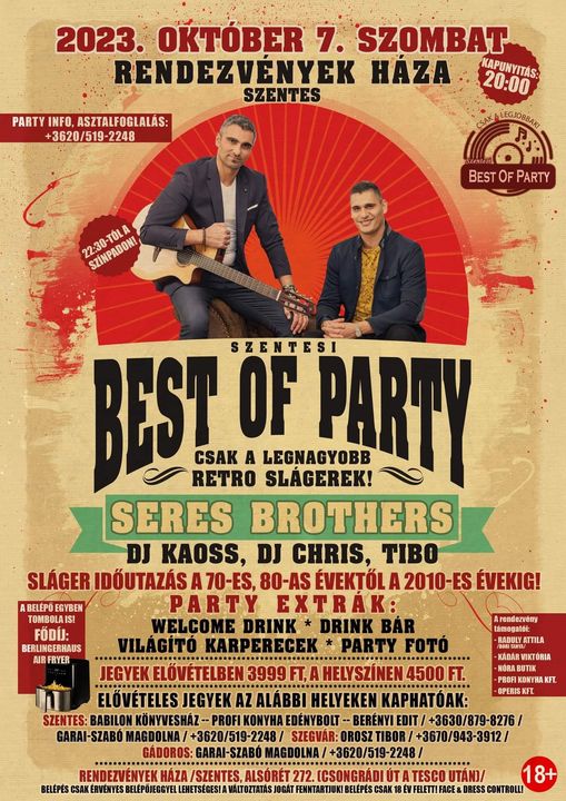 2023. október 7-én szombaton a Rendezvények Házában BEST OF PARTY – ahol csak a legjobb retro slágerek szólnak! Részletek a plakáton!