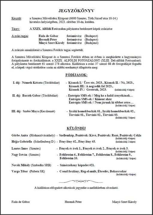 A XXIX. Alföldi Fotószalon pályázat eredménye 2023. október 10-én megszületett. …