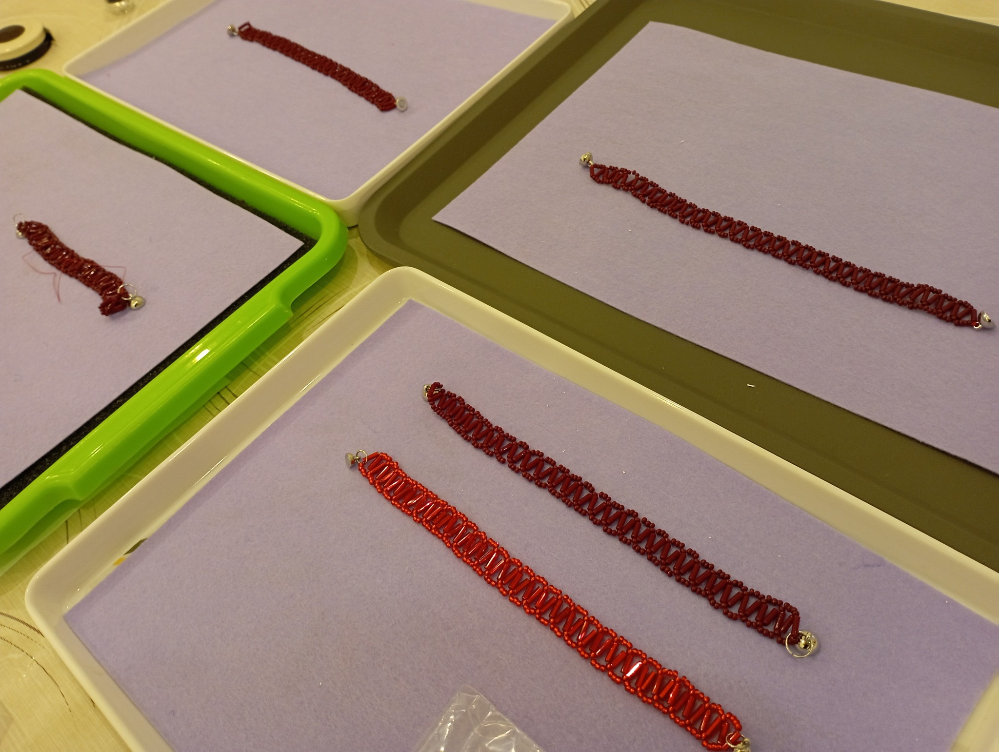A szakkör első két alkalmán Kétsoros gyöngykaláris és Vízfolyásos karkötő készült.