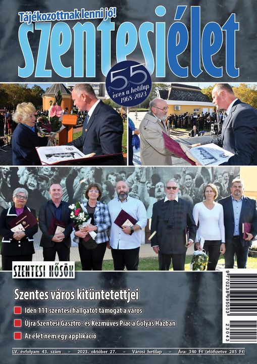 Az 55 éves Szentesi Élet címoldalán ezen a héten a város kitüntetettjei, két új díszpolgára: Mészáros Julianna és dr. Gombos Gyula, valamint a Szentes Városért Emlékérmesek.