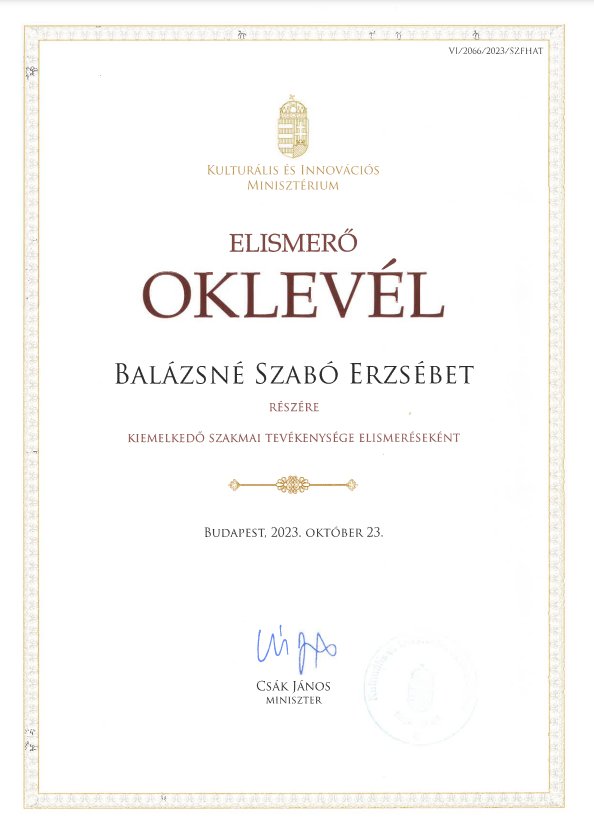 A Hódmezővásárhelyi SZC Szentesi Zsoldos Ferenc Technikum Igazgató helyettese, Balázsné Szabó Erzsébet Miniszteri Elismerő Oklevelet kapott kiemelkedő szakmai tevékenységéért. Gratulálunk az oklevélhez.