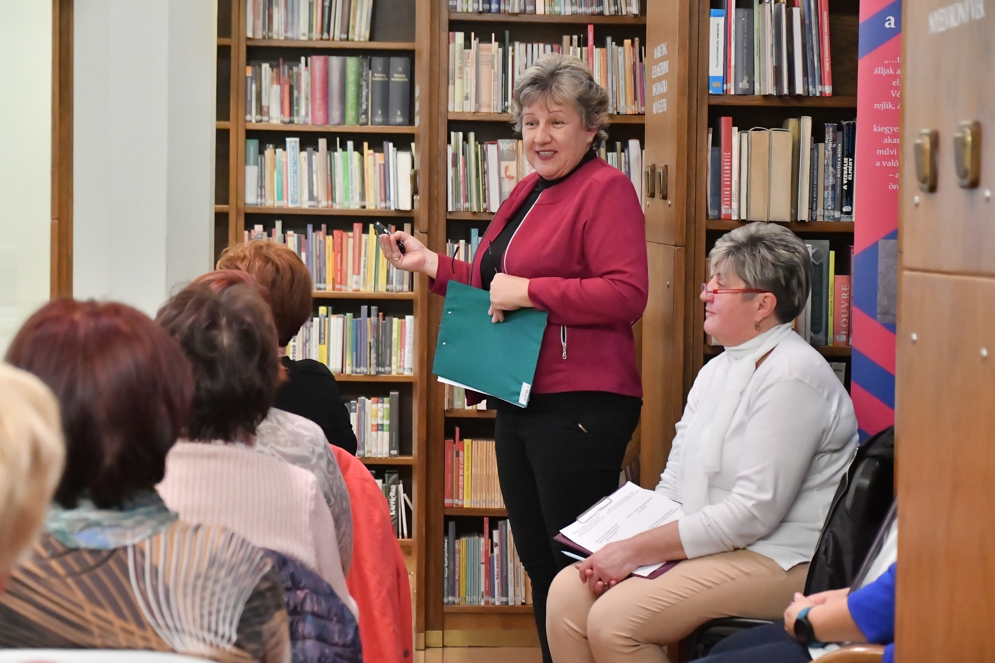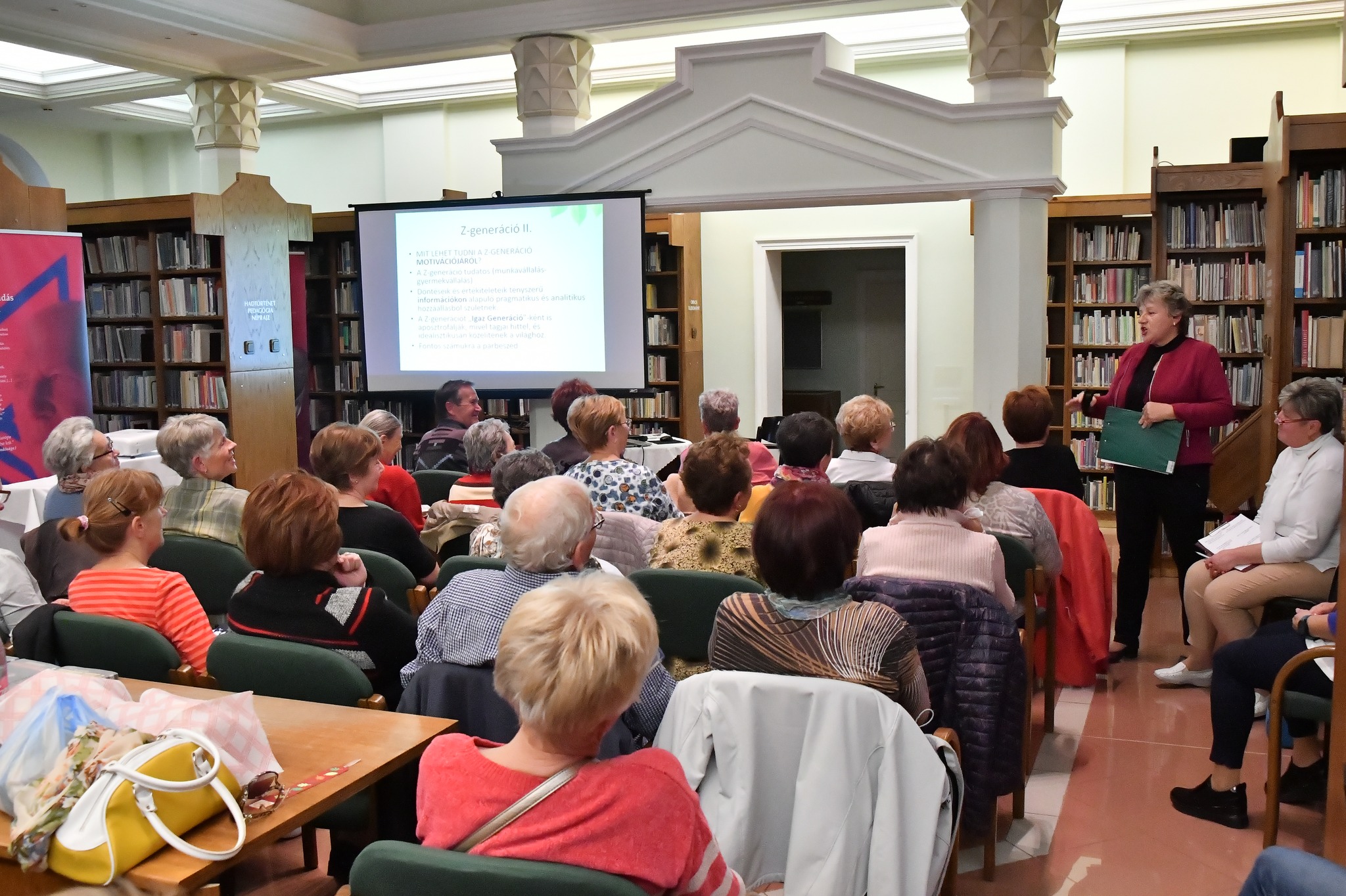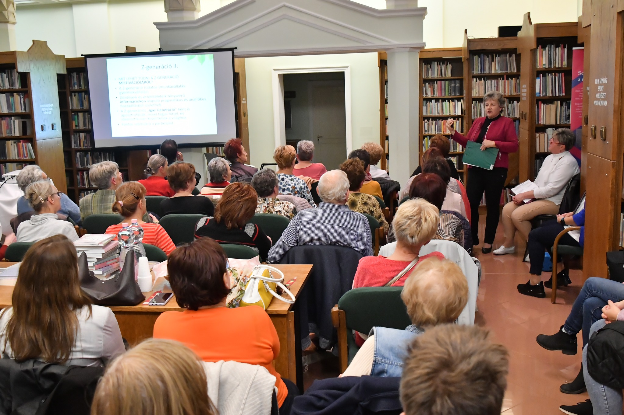 Generációs kihívások „avagy hogyan értsük meg egymást?” címmel tartott előadást Puskásné Halál Ágnes, a Szentesi Gondozási Központ igazgatója és munkatársa, Boros Éva az Alzheimer