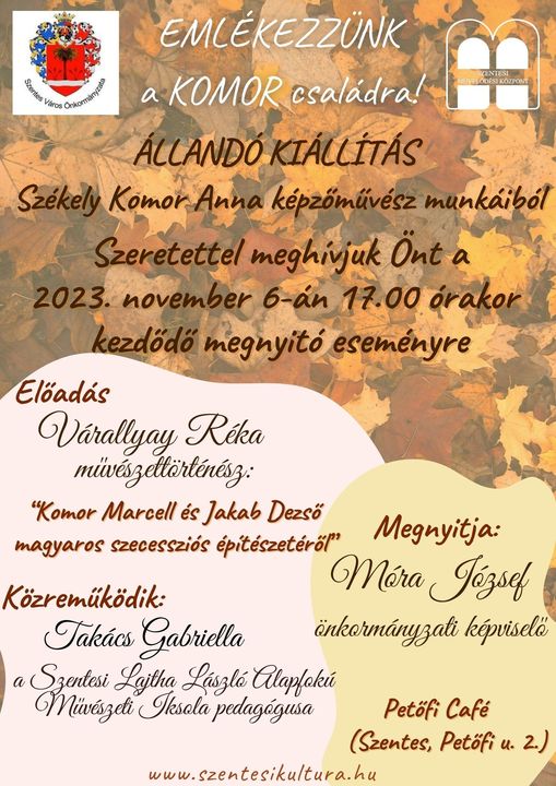 Kezdőlap Kultúra és szórakozás Kiállítás Székely Komor Anna képzőművész munkáiból nyílik egy állandó kiállítás a Petőfi C…