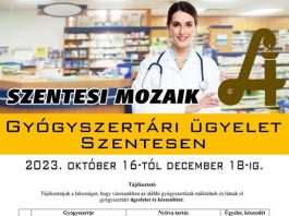 Tájékoztatjuk a lakosságot, hogy városunkban az alábbi gyógyszertárak működnek és látnak el gyógyszertári ügyeletet és készenlétet. www.szentesimozaik.hu Hírek|29