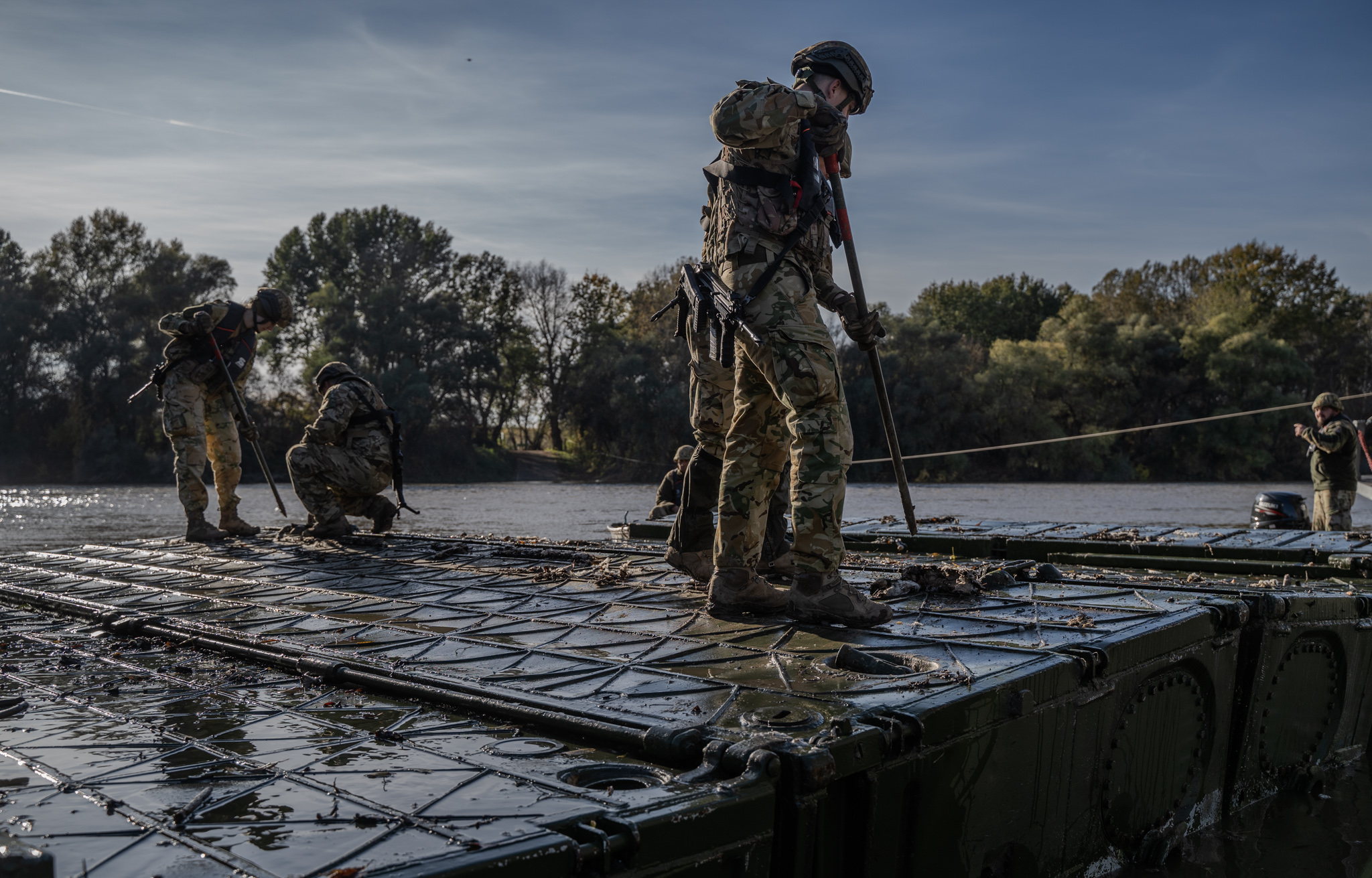 Adaptive Hussars 23: A leendő tisztek és altisztek is gyakorlatoztak Az MH II. Rákóczi Ferenc 14. Műszaki Ezred Hídépítő Zászlóalj katonáinak irányítása mellett az MH Ludovika Zászlóalj végzős tisztjelöltjei is részt vesznek a műszaki szakfeladatokban. A PMP hadihíd elemeinek összekapcsolása nemcsak gyakorlati, de tervezési képességeiket is erősítette. A gyakorlatban részt vevő Acélkocka altisztjelöltek is nélkülözhetetlen szerepet vállaltak: a tábor működtetéséhez szükséges közelbiztosító és táborőrzési feladatok végrehajtásával bizonyítják felelősségteljes hozzáállásukat.