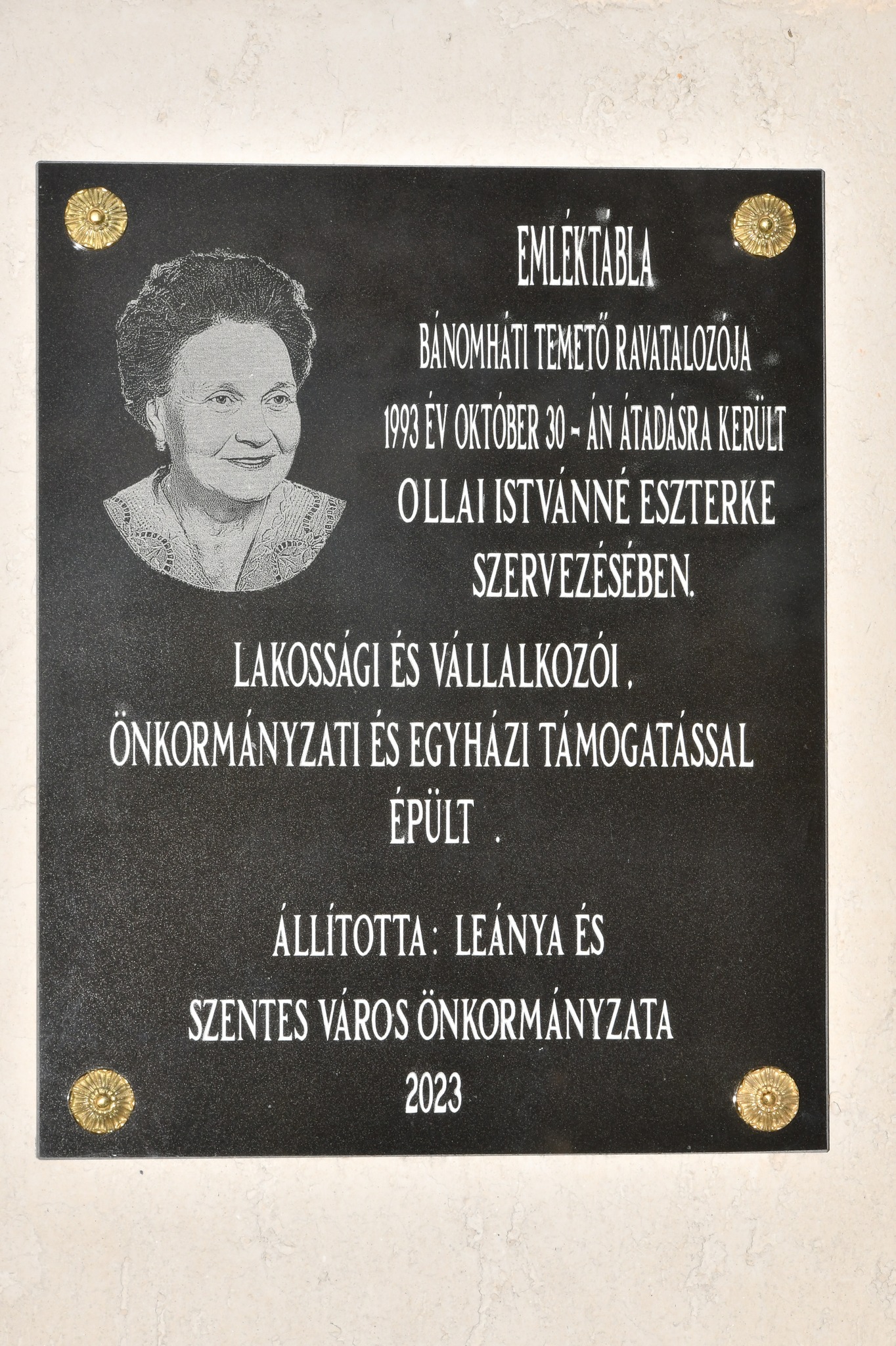 A Bánomháti temető ravatalozójánál emléktáblát lepleztek le Ollai Istvánné Esztike néni tiszteletére, aki nemcsak a kiséri körzet önkormányzati képviselője volt, hanem sokat tett azért, hogy 1993-ban a rendkívül elhanyagolt állapotban lévő temetőben közös