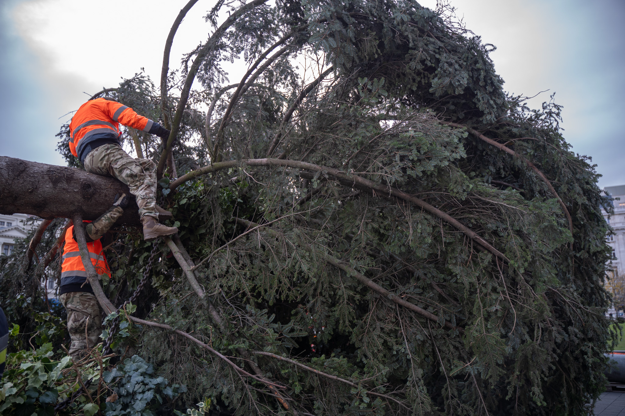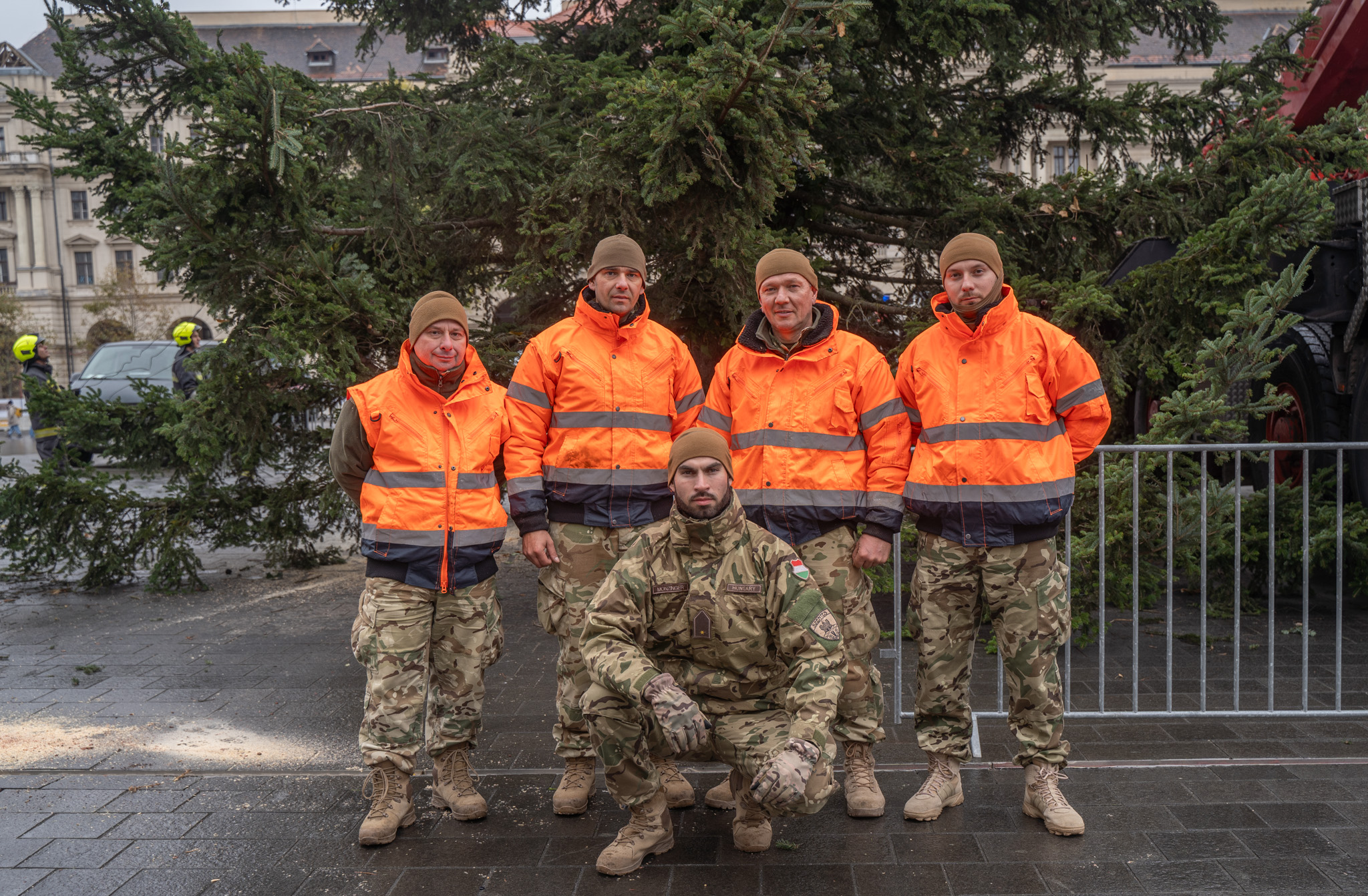 A műszaki ezred katonáinak közreműködésével szállított fát kedden kezdik díszíteni és több mint 2,5 km hosszú fényfüzér fogja kivilágítani advent első vasárnapján. Mutatjuk a Kossuth téren a felállítás munkálatait – képekben: ✍️📷: Baranyai Erika Piros t.szds