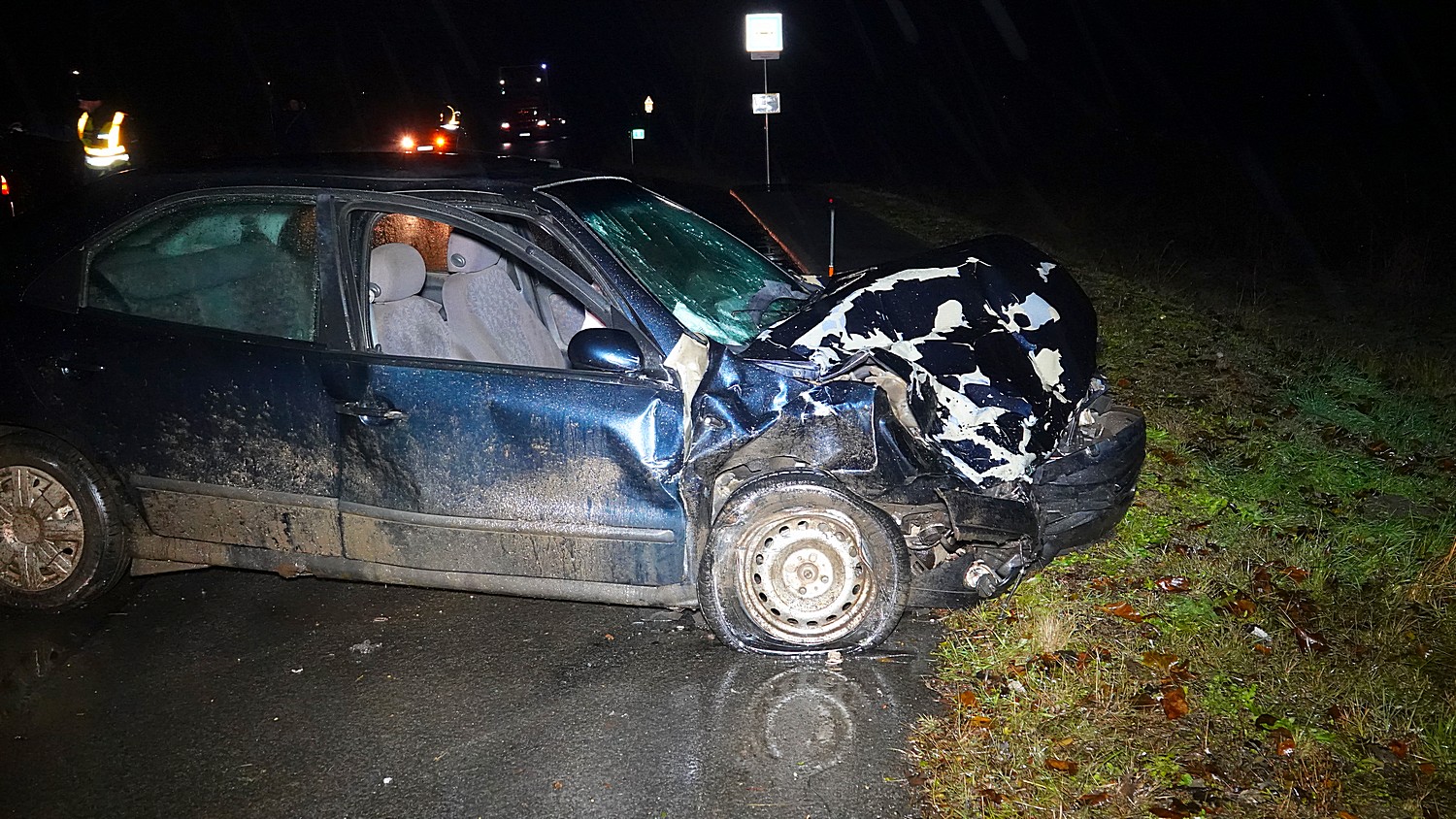 Este, a sötétben haladt Szarvas felé a csomagszállító kisteherautó, amikor a szemből érkező sötétkék személyautó balra nagy ívben akart lekanyarodni, de vezetője az esőben későn vette észre a futár kocsiját és összeütköztek. A személyautó az úton keresztben állt meg, míg a csomagküldő kisteherautó az útszéli árokba csapódott. Ezután a Szentes felől érkező narancssárga kocsi vezetője a sötétben későn vette észre az úttesten keresztben álló kivilágítatlan autót és nekiütközött, majd átsodródott a másik sávba, ahol a szemből érkező kék színű autóval ütközött össze. Információnk szerint az úton keresztbe fordult sötétkék színű autót vezető nőt a mentők kórházba szállították és még rajta kívül ketten sérültek meg a balesetben. Az ütközésektől a három személyautó teljesen elzárta az utat, ezért a helyszínelés és a mentés idejére, több órán át teljes útzár volt érvényben.