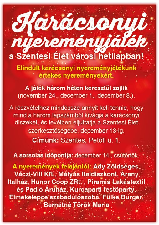 Kezdőlap Szentesi Élet Karácsonyi nyereményjáték a Szentesi Élet városi hetilapban! Elindult karácsony…
