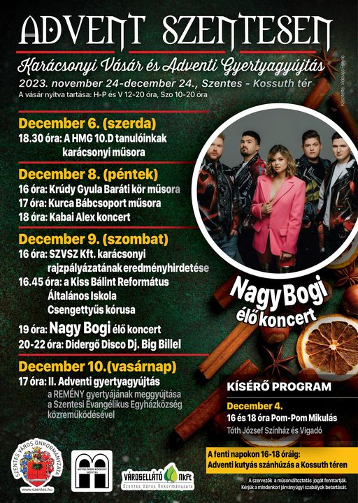 Szombaton Csengettyűs kórus, Nagy Bogi, DJ. Big Bill, vasárnap pedig meggyújtjuk a második gyertyát a koszorún!