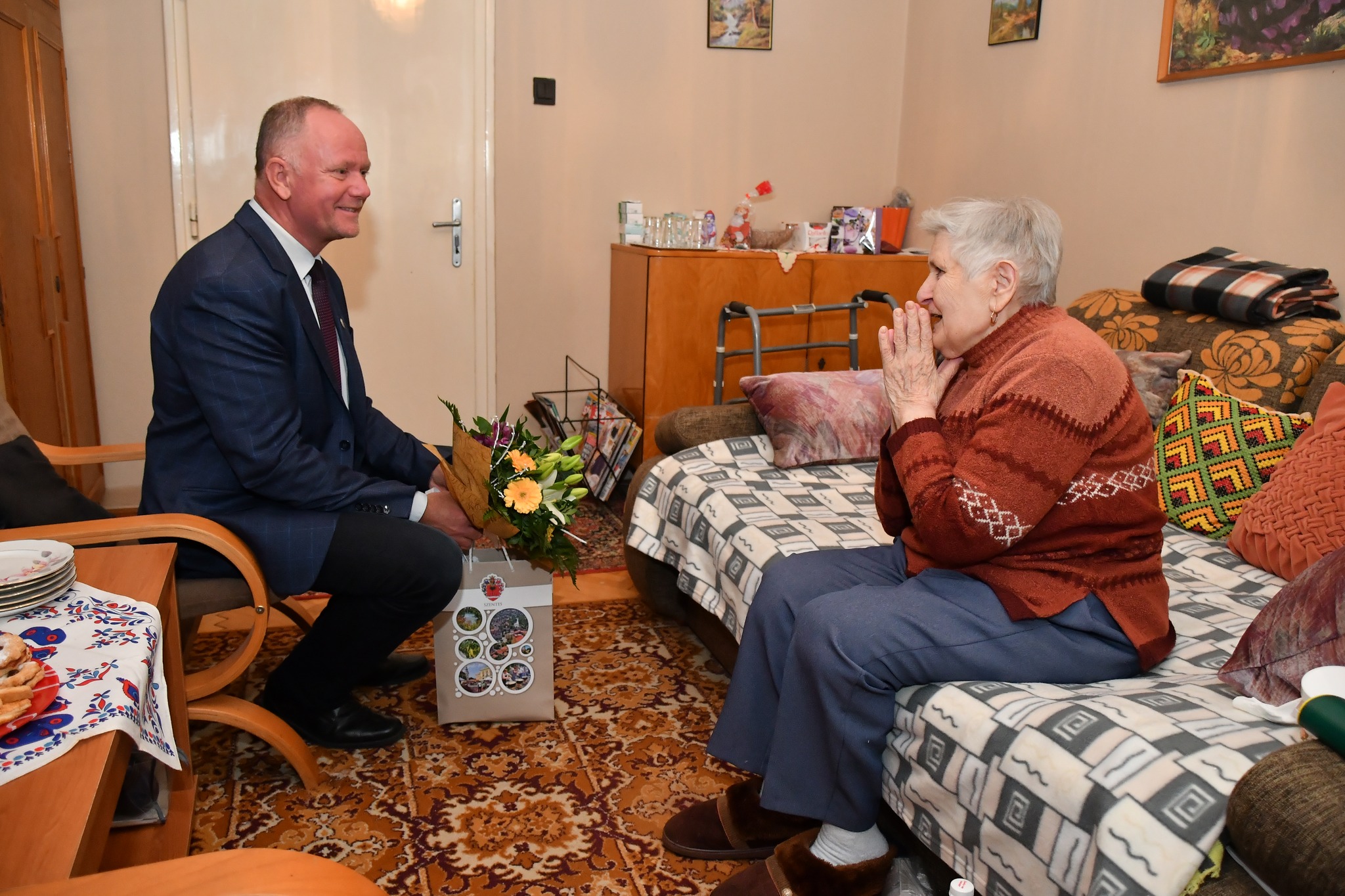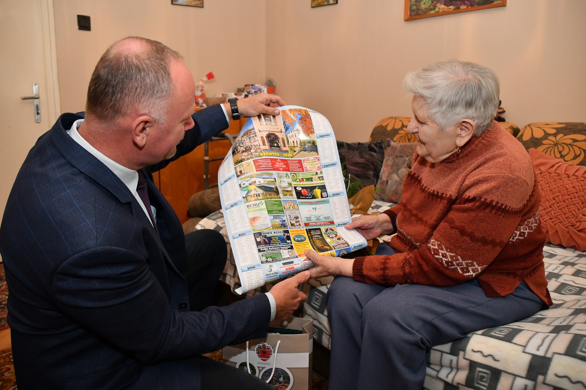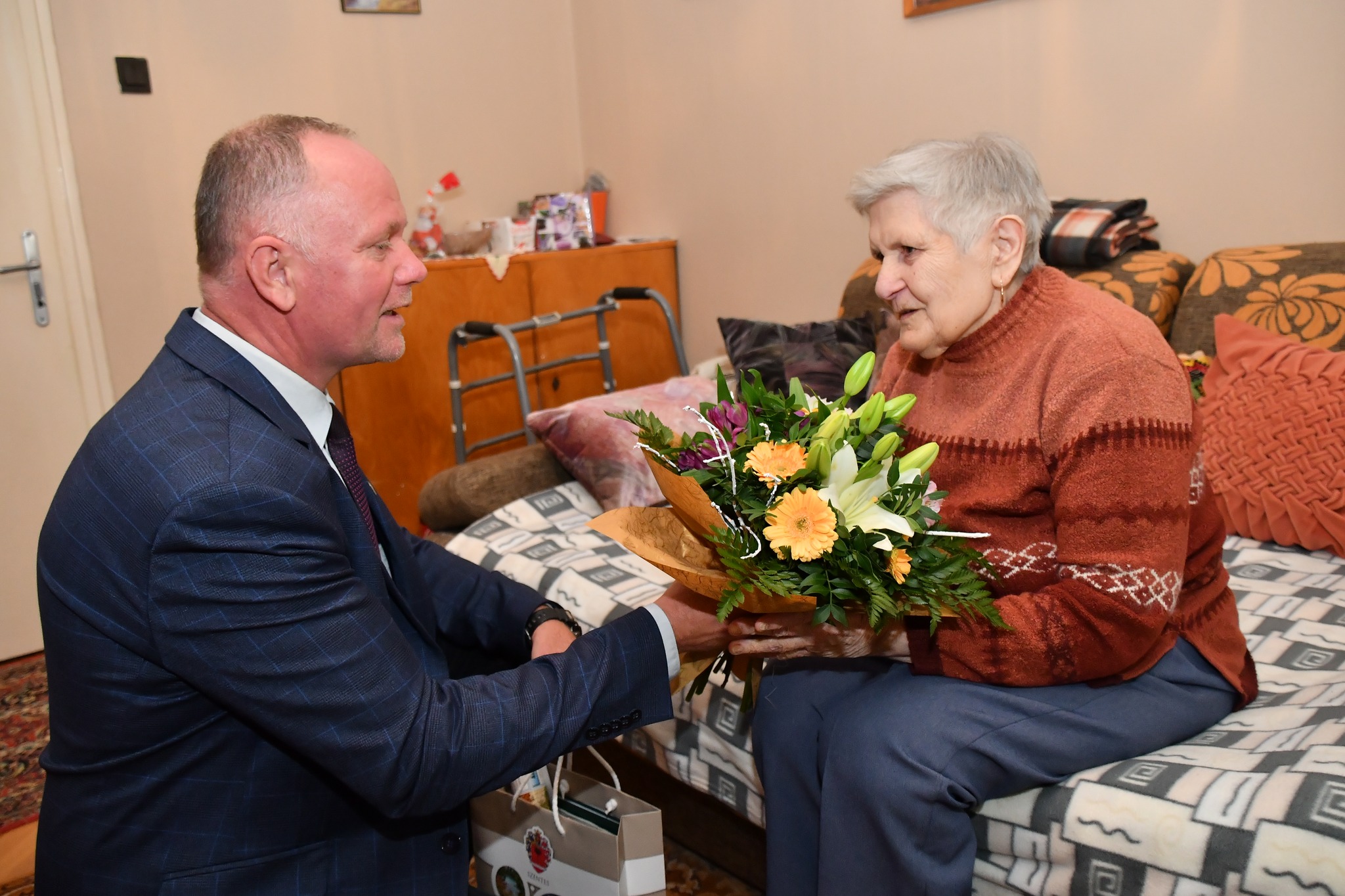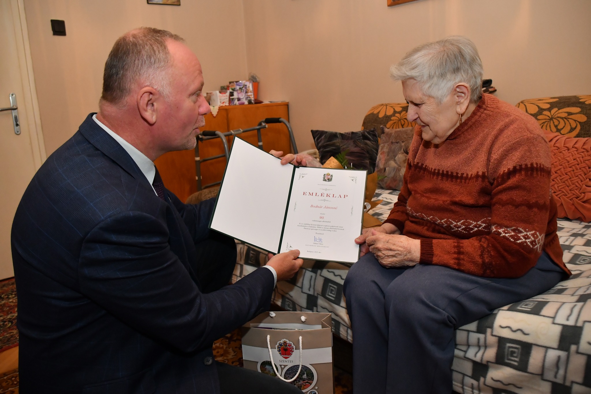 Szabó Zoltán Ferenc polgármester köszöntötte a város nevében Bodnár Jánosné Eszterke nénit az Attila úti otthonában 90. születésnapja