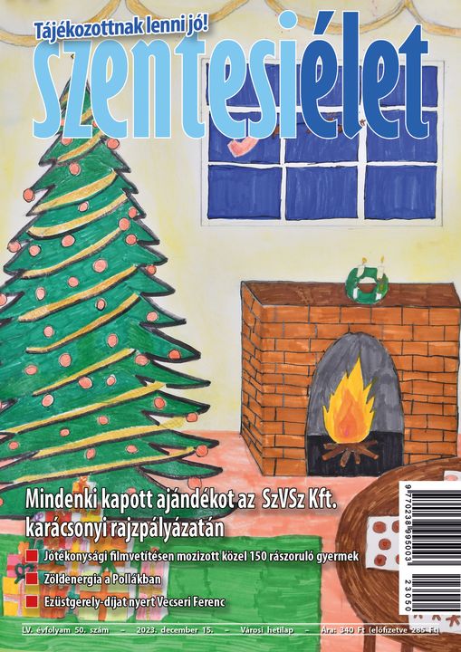 Az 55 éves Szentesi Élet címoldalán ezen a héten az SzVSz Kft. karácsonyi rajzpályázatának egyik győztes alkotása. Az egyéni és a csoportos kategória nyertesinek rajzait megtalálják a városi hetilap 8-9. oldalán.