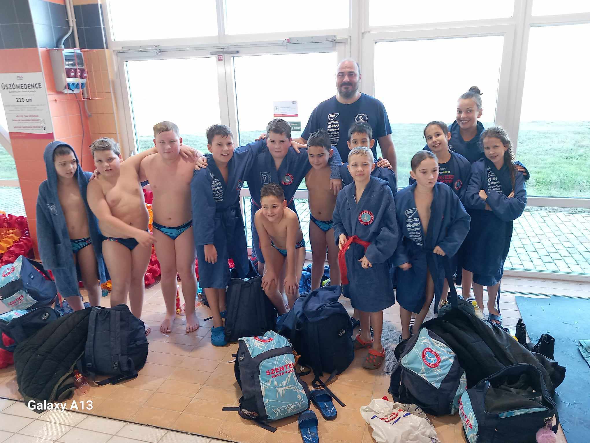 Mórahalmi évzáró 🤽♂️🤽♀️ Baby fiúcsapatunk – három lánnyal kiegészülve – Mórahalmon zárta az évet. A Kecskemét és a Gyula ellen ugrottak a medencébe, a gólokat ebben a korosztályban nem számolják. A hangsúly a játékon volt, két jó hangulatú meccsel zárták a 2023-as esztendőt. 🥳🥰