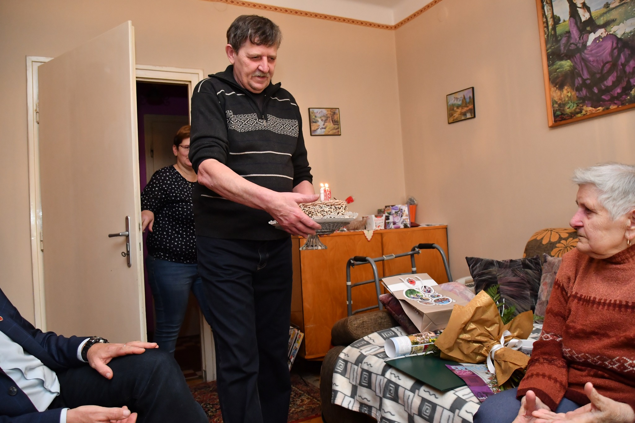 A város nevében Szabó Zoltán Ferenc polgármester köszöntötte Bodnár Jánosné Eszterke nénit 90. születésnapja alkalmából Attila utcai otthonában. A köszöntésről bővebben lapunk 6. oldalán