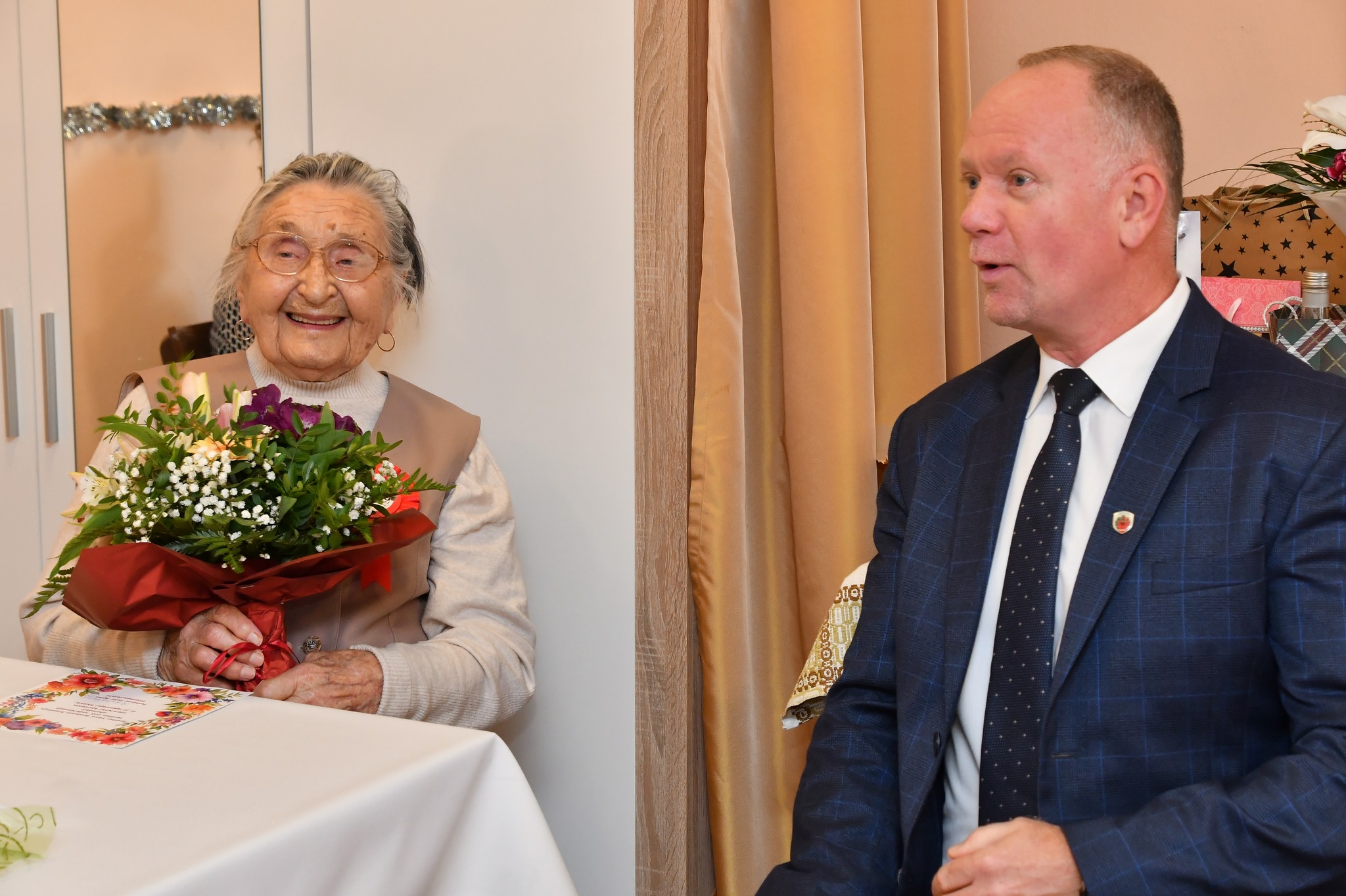 Szabó Zoltán Ferenc polgármester még, amikor Terike néni a 100. születésnapját ünnepelte, megígérte, hogy ezután minden esztendőben felköszönti őt. Bár decemberben lett volna az ünnepség, de akkor nem lehetett megtartani a köszöntőt, így most már a 104. évében járó mosolygós Terike néni fogadta a jókívánságokat.