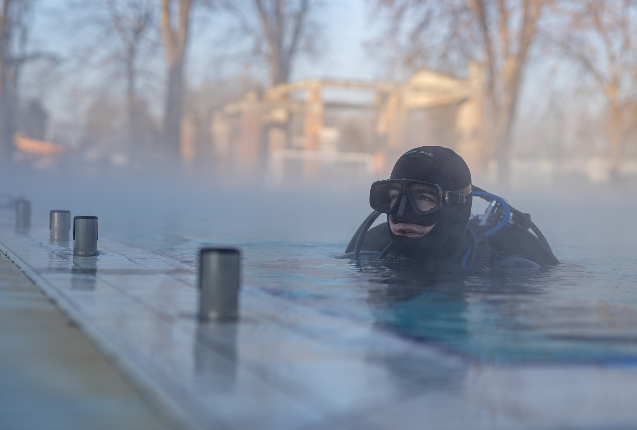 Katona búváraink számára szinten tartó kiképzést szerveztünk a csongrádi városi uszodában, ahol begyakorolták a zárt téri, barlangi merülés szabályait, gyakorlati fogásait. A januári hidegben végrehajtott feladatok nagy leterhelést jelentettek búváraink számára, azonban ezek teljesítése elengedhetetlen ahhoz, hogy felkészüljenek a következő hét jeges merülésére. Hoztunk néhány fotót, nézzétek! ✍️Baranyai Erika Piros t.szds