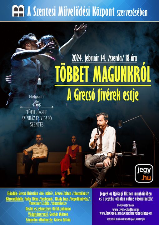 Kezdőlap Kultúra és szórakozás Szentesi Művelődési Központ Az est különös átmenet az irodalmi pódiumest és a színházi, zenés, táncos...