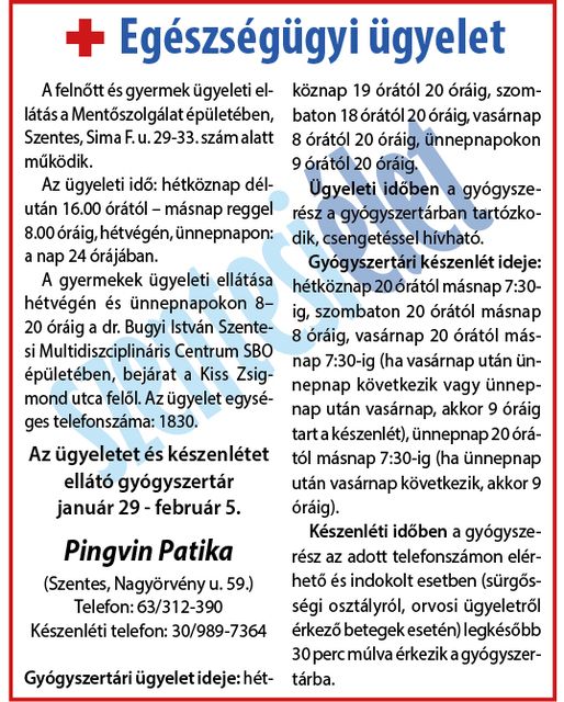 Kezdőlap Szentesi Élet Egészségügyi ügyelet…