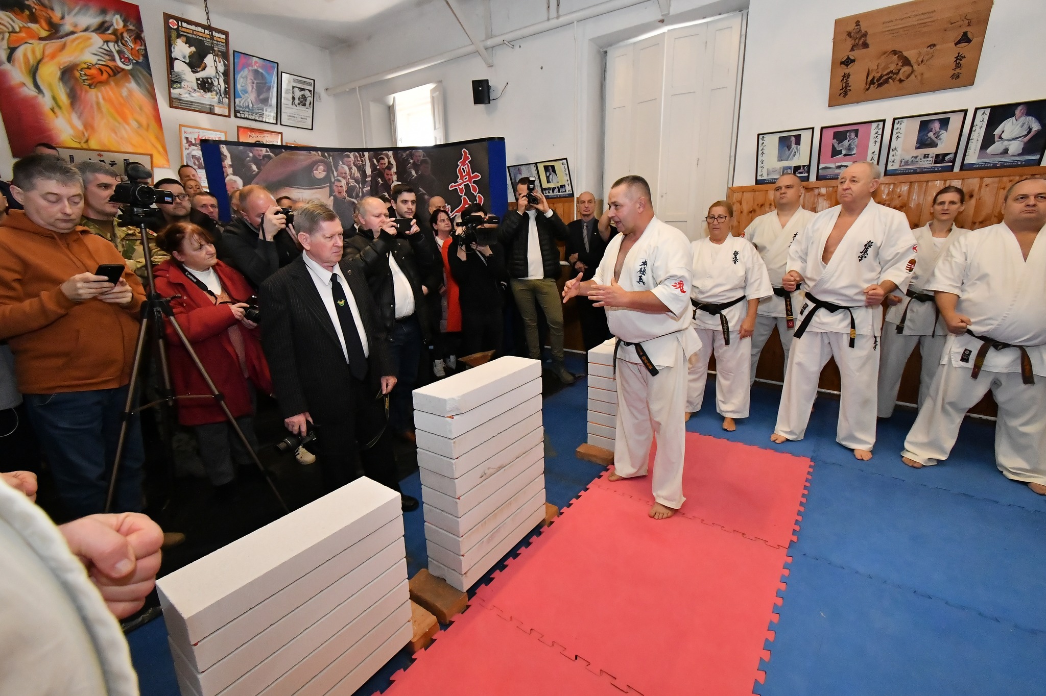 – Testközelből láthatják, hogyan lehet fejjel, könyékkel, sípcsonttal egyetlen mozdulattal összetörni betonlapokat, téglákat, 2-3 kg-os folyami köveket. – Tehát egy komplex csomagot kínálunk a Magyarország biztonságáért felelős szerveknek, hogy a high-tech hadsereg technikái mellé magas szintű önvédelemben jártas, kiváló kondícióval rendelkező katonákat, rendőröket képezzünk ki, akik karate mesterként védik Magyarország lakosságát és határait.