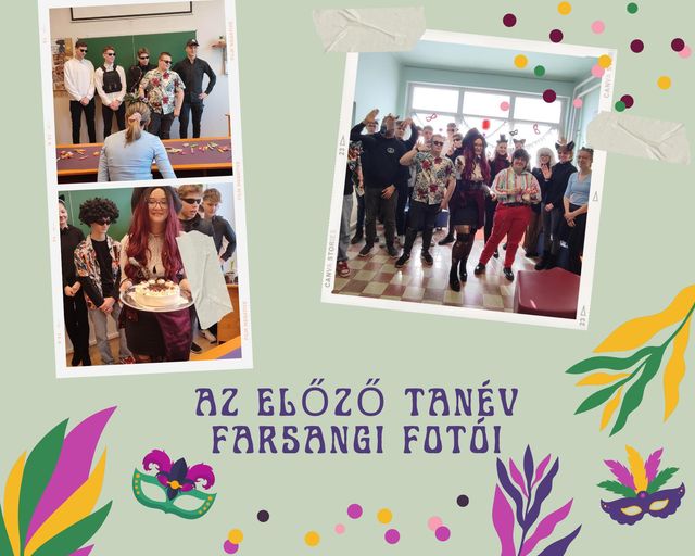 A 2023-as Pollák Farsang fotóival hívjuk fel diákjaink figyelmét arra, hogy csütörtökön, február 15-én jelmezversenyt rendezünk. Teremtsünk együtt karneváli hangulatot az iskolában!