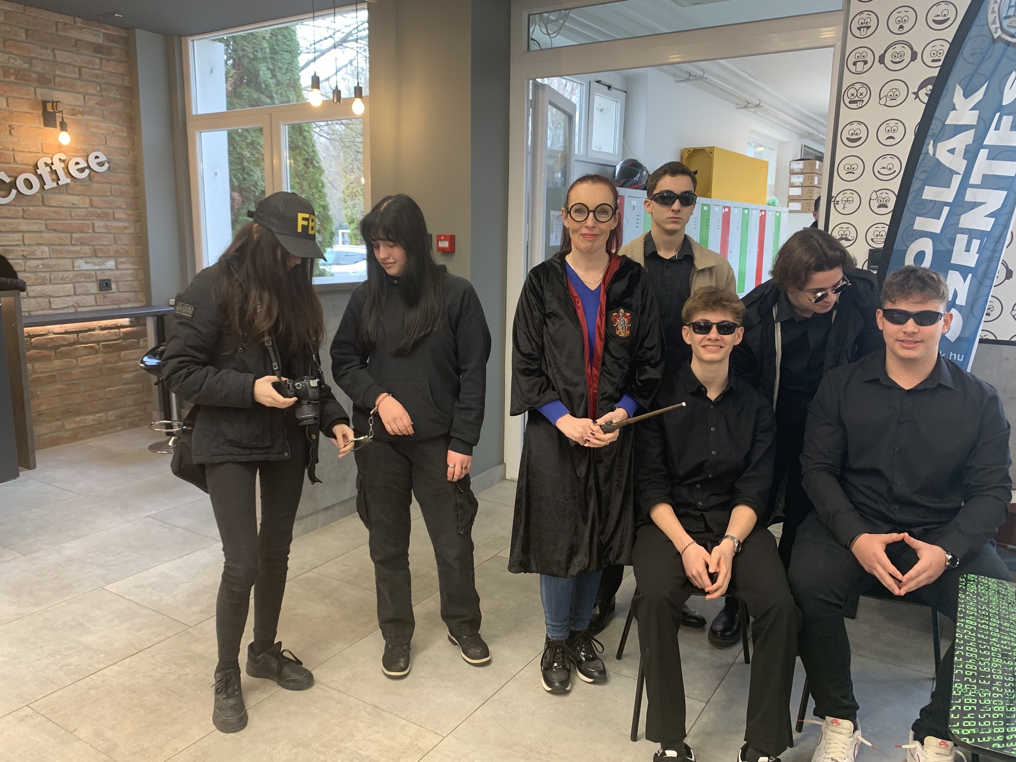 A tavaly megteremtett hagyományt folytatva a farsangi időszak végén jelmezversenyt tartottunk iskolánkban. A karneváli forgatagban felbukkantak mesefigurák és filmhősök, bűnözők és bűnüldözők, sportolók és nyaralók, sőt még járványügyi szakemberek is. Ráadásként pedagógusaink is képviseltették magukat a beöltözők között, illetve egy rögtönzött trombita-koncertet is meghallgathattunk. A zsűrinek nehéz dolga volt a döntéshozatalnál, de végül gazdára találtak a Pollák Büfé-utalványok és az édességek: a képzeletbeli dobogóra Fiona és Shrek, Bud Spencer, valamint a Dinoszaurusz állhatott fel.