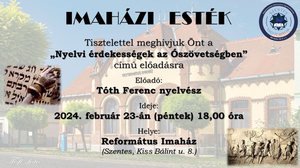 A nagytemplomi református férfikör programsorozatot indít, IMAHÁZI ESTÉK címmel. 2024. február 23-án pénteken Tóth Ferenc nyelvész előadását hallhatják Nyelvi érdekességek az Ószövetségben címmel.
