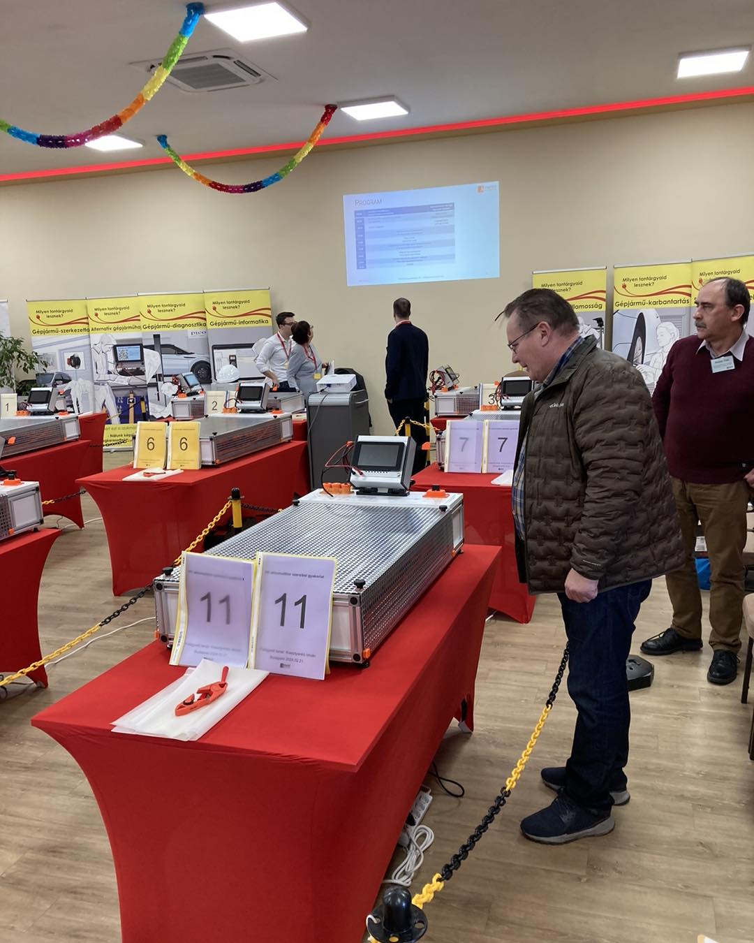 2024. február 21- én iskolánk 2 gépész műszaki oktatója ( Horváth József, Szobota László) részt vettek Budapesten a Maróti Gépjárműtechnikai Képzőközpont által szervezett HV (nagyfeszültségű) akkumulátor szimulátor szerelési gyakorlaton. A rendezvényen olyan akkumulátor szimulátorok alkalmazását mutatták be, ami a specializált gép- és járműgyártás ágazathoz tartozó területek – többet között: hibrid és elektromos gépjármű mechatronikus, gépjármű mechatronikus – képzésének nélkülözhetetlen feltétele.