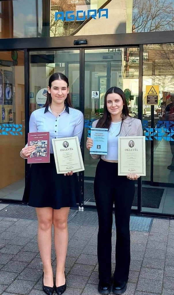 11.d osztályos tanuló képviselte. Mindketten nagyszerű teljesítményt nyújtottak: harmadik és első helyezést szereztek. Ezzel az eredménnyel Gyalog Lilla lehetőséget kapott, hogy részt vegyen a nagy múltra visszatekintő országos döntőn, amit a hagyományokhoz híven Győr városa rendez április végén. Gratulálunk, és további sikereket kívánunk Lilinek! Köszönjük a felkészítő tanárok Fári Mónika (Beke Lilla Gréta) és Molnár Szilvia (Gyalog Lilla) munkáját.HMG
