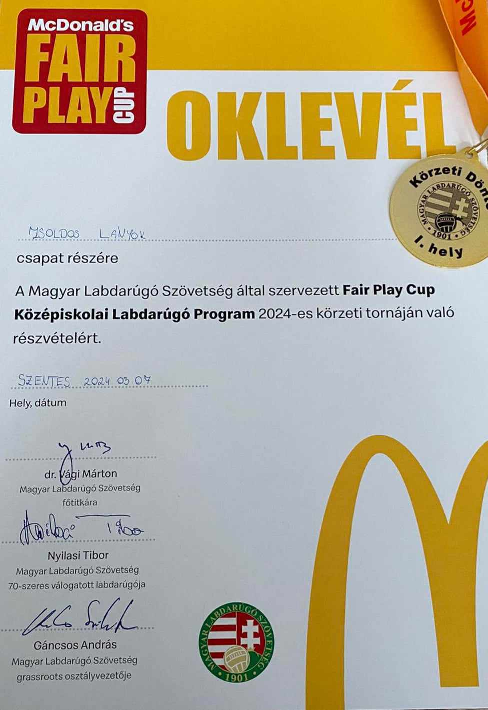 A lánycsapatoknak a Fair Play focikupa tavaszi fordulóján március 7-én ismét mellőzni kellett a napsütést és a madárcsicsergést. A hidegben nem túl vidáman és kicsit kevésbé lelkesen de kitartóan gyűjtögették a lányok a pontokat. A nap végére megszerzett 1. hellyel továbbjutottak az áprilisi megyei fordulóra. Gratulálunk lányok! Csapattagok: Czifra Noémi, Varga Melinda, Kardos Vanessza, Benedek Dorina, Asztalos Réka, Nagy Napsugár, Czinka Izabella