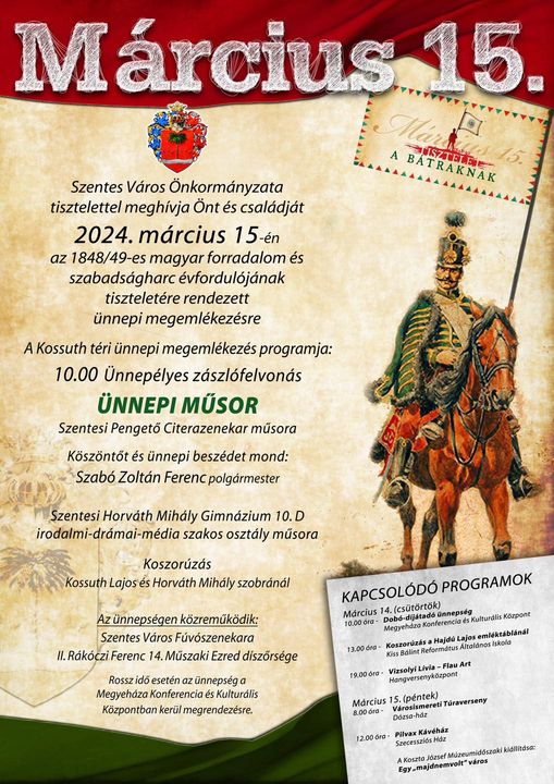 Szentes Város Önkormányzata és a Magyar Honvédség II. Rákóczi Ferenc 14. Műszaki Ezred tisztelettel meghívja a lakosságot az aradi vértanúk emléknapja alkalmából tartandó ünnepi...