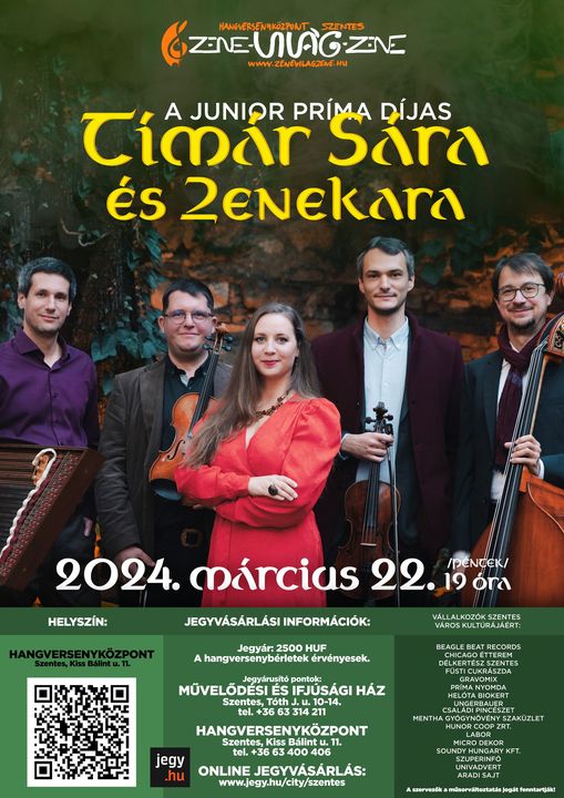 A Junior Príma-díjas Tímár Sára és zenekara koncertezik a Hangversenyközpontban március 22-én, pénteken 19 órakor. Az énekesnő neve a különböző műfajok kedvelőinek is ismerősen cseng a hazai zenei életben, hiszen évek óta több népzenei és világzenei formációnak is aktív tagja. Koncertajánlónkat a Szentesi Élet 4. oldalán olvashatják.