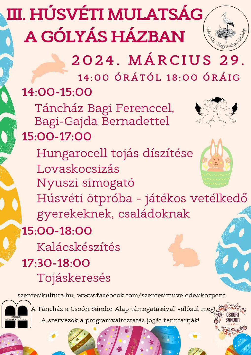 Találkozzunk 2024. március 29-én (pénteken) 14:00 órától a Gólyás Házban!