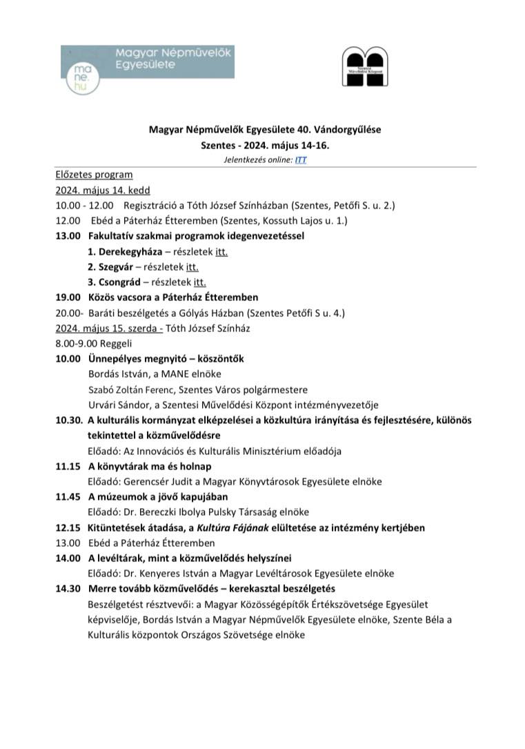 Idén a Magyar Népművelők Egyesületének 40. Vándorgyűlése Szentesen kerül megrendezésre!
