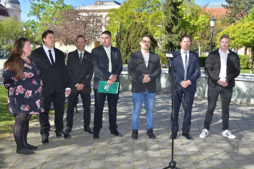 Szentesen a Kossuth téren mutatta be a Mi Hazánk Mozgalom pártigazgatója Szabadi István a párt szentesi polgármesterjelöltjét Baranyi Lászlót.