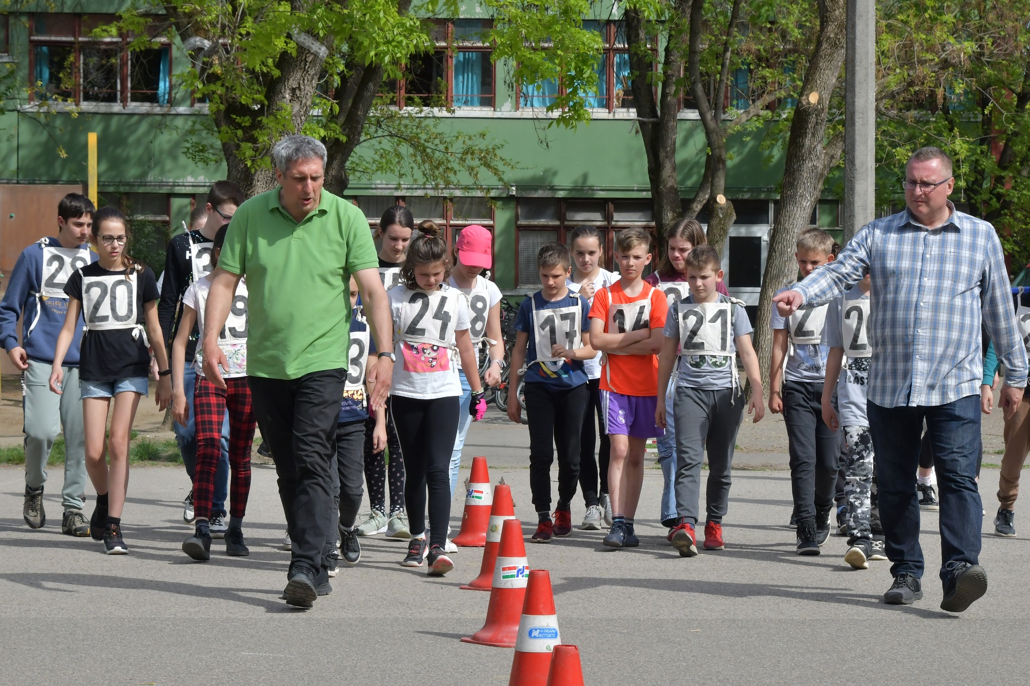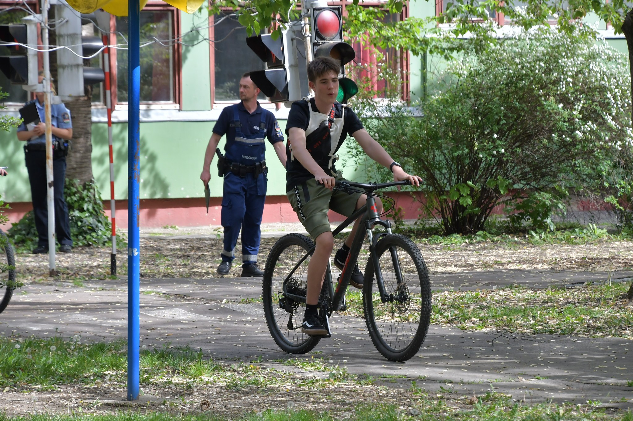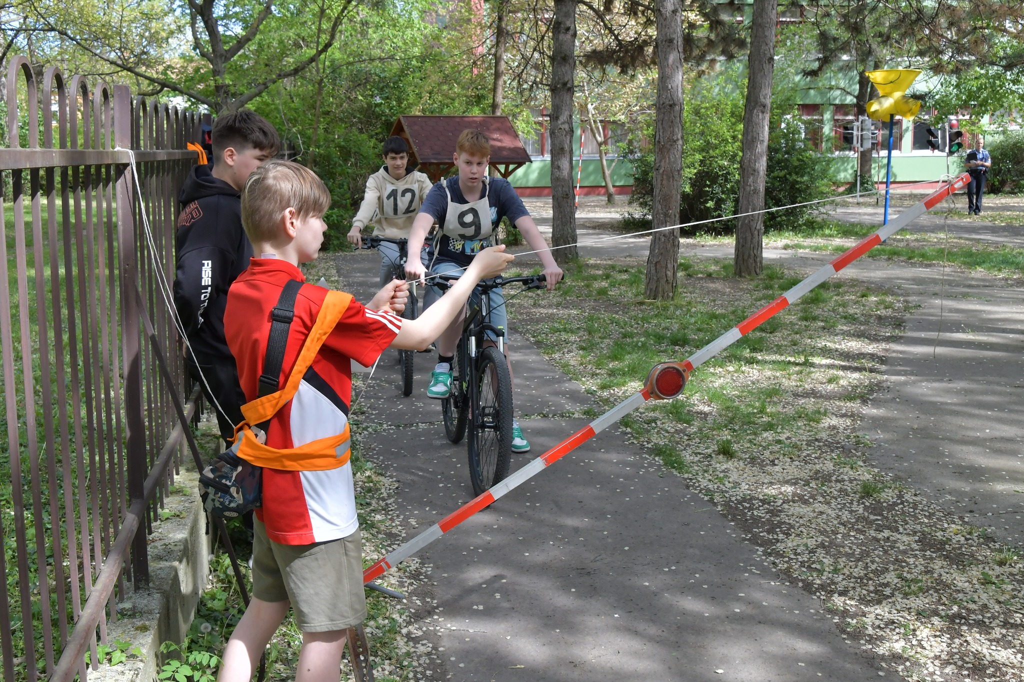 A szentesi Rendőrség Közlekedésrendészeti osztályának támogatásával kiírt versenyen az általános iskolások 5-8. osztályos tanulói vehették részt. Ebben az évben 32 tanuló nevezett a versenyre. A tanulók forgó színpad szerűen, három helyszínen versenyeztek. A korosztályuknak megfelelő tesztlapot töltöttek ki, forgalmi szituációban a rendőrök pontozása mellett kellett minél szabályosabban kellett közlekedniük, valamint az ügyességi pályát kellet időre és minél kevesebb hibaponttal teljesíteni.