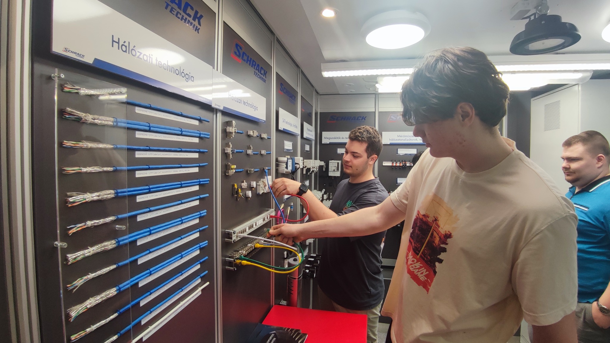 A Digitális Témahét zárásaként a a világ egyik vezető technológiai vállalatának képviselői tartottak interaktív tájékoztatót diákjainknak. A Shrack Technik Csoport az energiaelosztás és adatátvitel termékeire és megoldásaira szakosodott, és többek között elosztóberendezés tervező szoftvert is kínál ügyfeleinek.