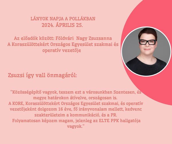 Kezdőlap Hírek Oktatás, tanulmányi hírek Lányok Napja a Pollákban – Bemutatjuk a rendezvény előadóit I….