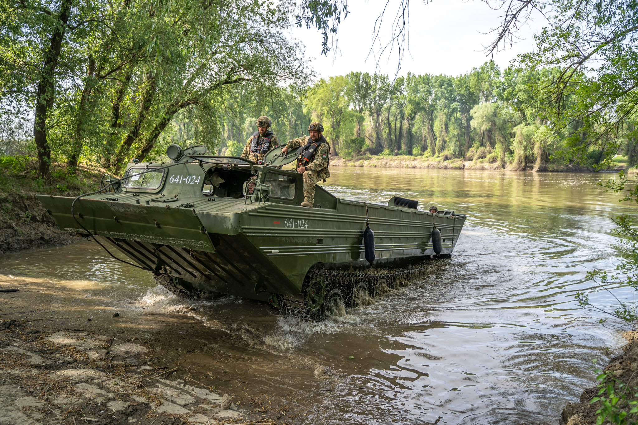 A résztvevők, az ezred technikai eszközeivel dinamikus bemutató során ismerkedtek meg, illetve találkoztak a műszaki szakos acélkocka altiszti tanfolyam hallgatóival is, a vízi átkelés gyakorlása közben.🌊