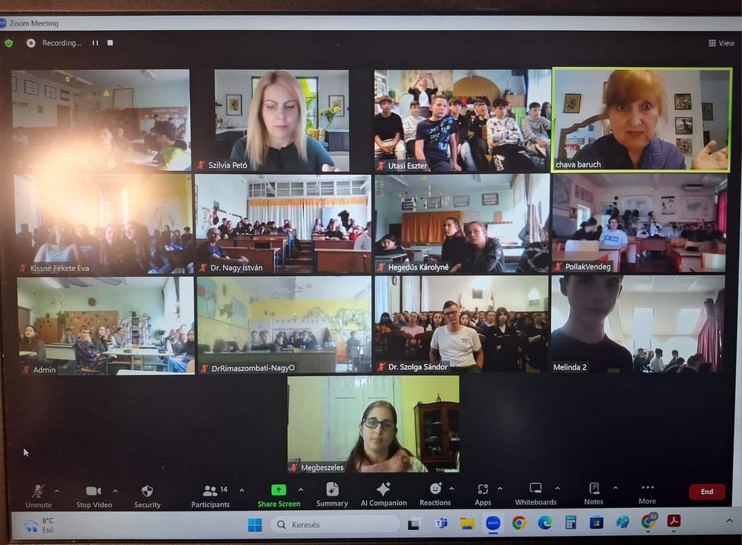 2024. április 17-én egy különleges találkozóval emlékeztünk a holokauszt magyarországi áldozataira, a 80 évvel ezelőtt történt eseményekre. Iskolánk 30 diákja hallgathatta meg Sommer Katalin túlélő megrendítő visszaemlékezését a budapesti Holokauszt Emlékközpontban. A beszélgetés során Radó Denise színésznő és Gyabronka József színész mondták el személyes érzéseiket és gondolataikat. A megemlékezéshez kapcsolódva április 16-án a 11. B osztály tanulói vehettek részt egy interaktív múzeumpedagógiai foglalkozáson. A program egy zoomos kerekasztal-beszélgetéssel zárult, melynek során a pollákos diákok több középiskola tanulóival együtt hallgathatták meg Dr. Chava Baruch magyar származású történész előadását a Világ Igazairól. A programokat Szvetnyik Melinda tanárnő szervezte.