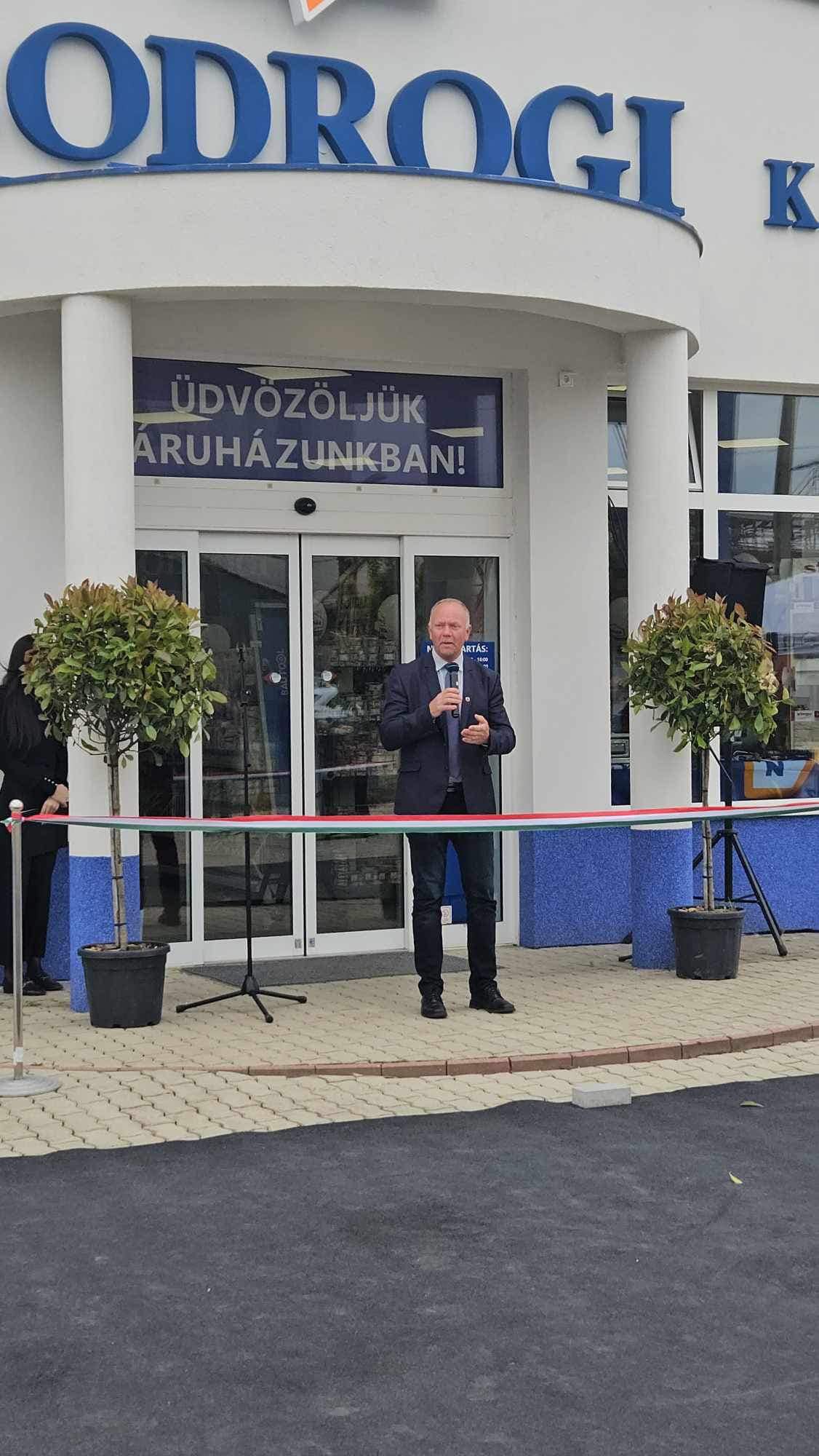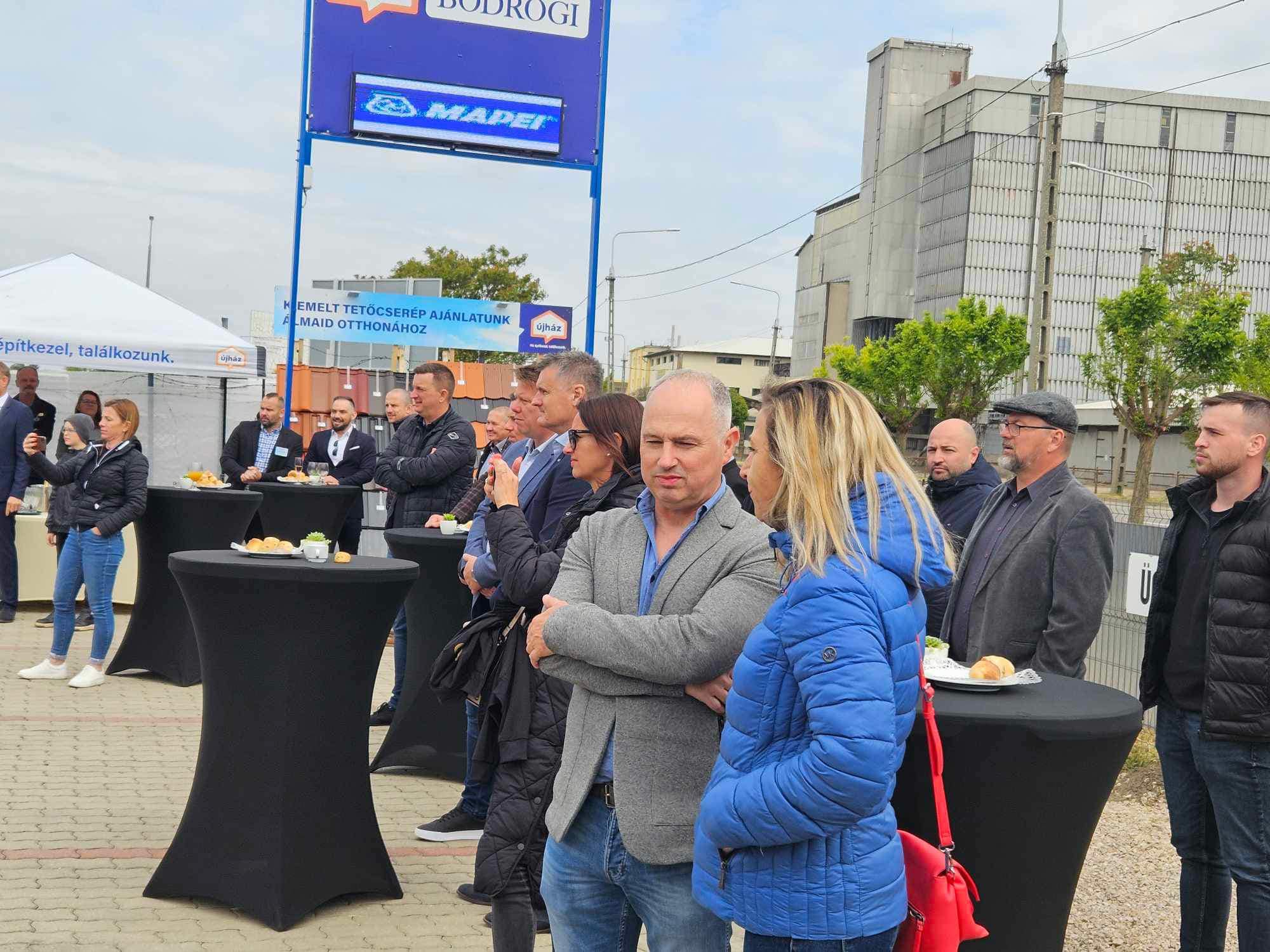 Bodrogi Ferenc megnyitó beszédében kitért a kifejezetten építőipari cégek helyzetére, a Bodrogi Áruház által nyújtott termékek minőségére, az építkezéseken az anyagok minőségi követelményeire és az aktuális árak kialakítására. Az áruház bővítésének történetébe is betekintést nyerhettünk, bemutatta az általuk forgalmazott építőipari termékeket. Beszélt az aktuális bővítésekről, és hozzátette, hogy az Újház Zrt. tulajdonosai garantálják a kiváló minőséget, ár-érték arányban.