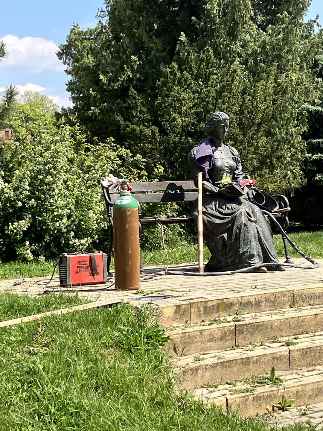 Lassan újra régi pompájában olvas a lány 😁. Pótolják az ellopott háttámlát. Köszönjük.