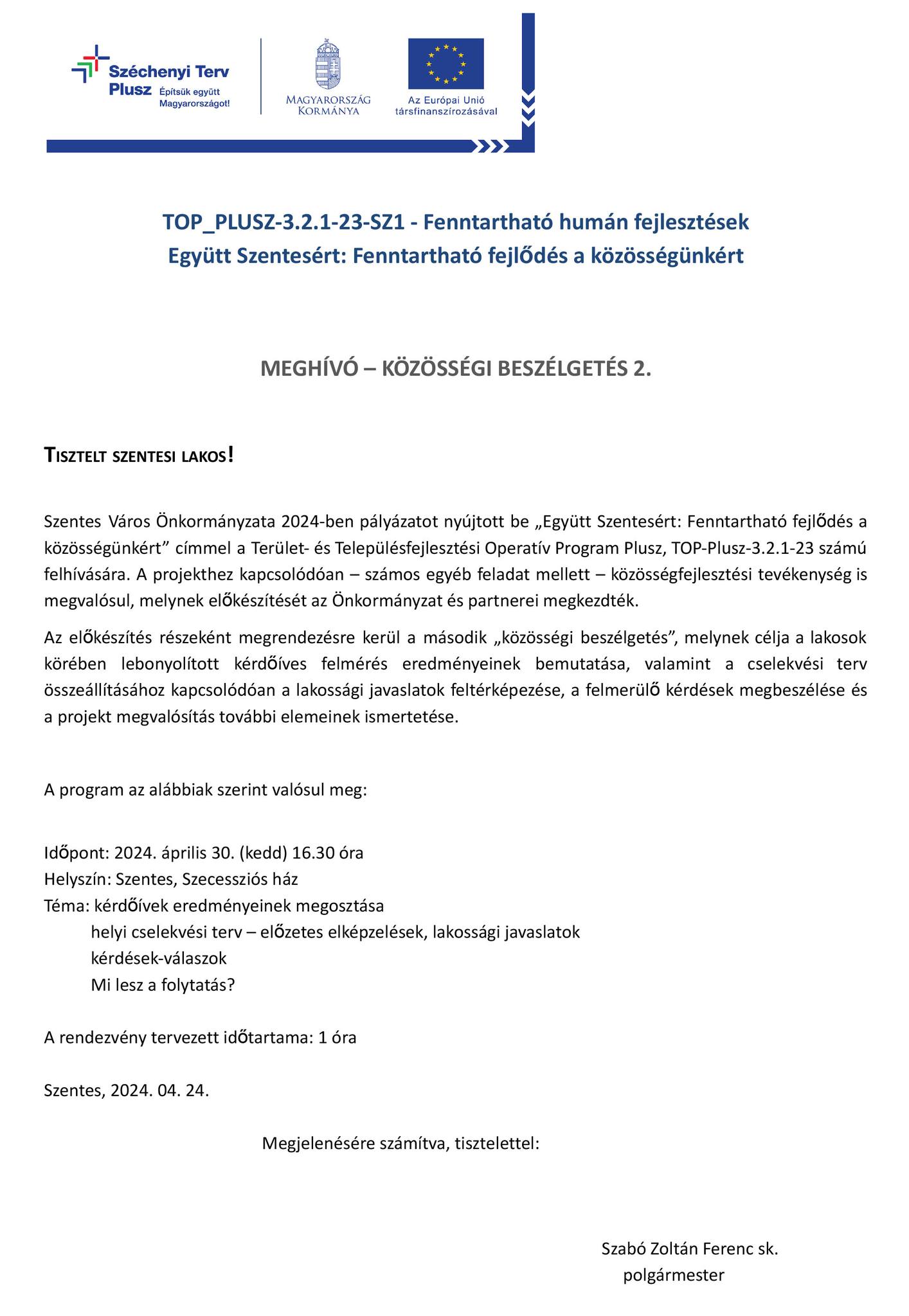 Megjelenésére számítva, tisztelettel: Szabó Zoltán Ferenc polgármester