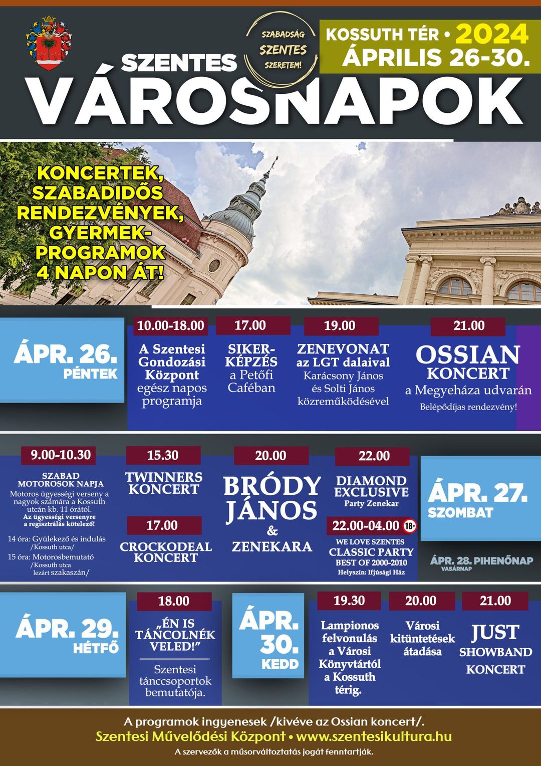 Szentes várossá avatásának ünnepi rendezvénysorozata 2024. április 26- 30. között.