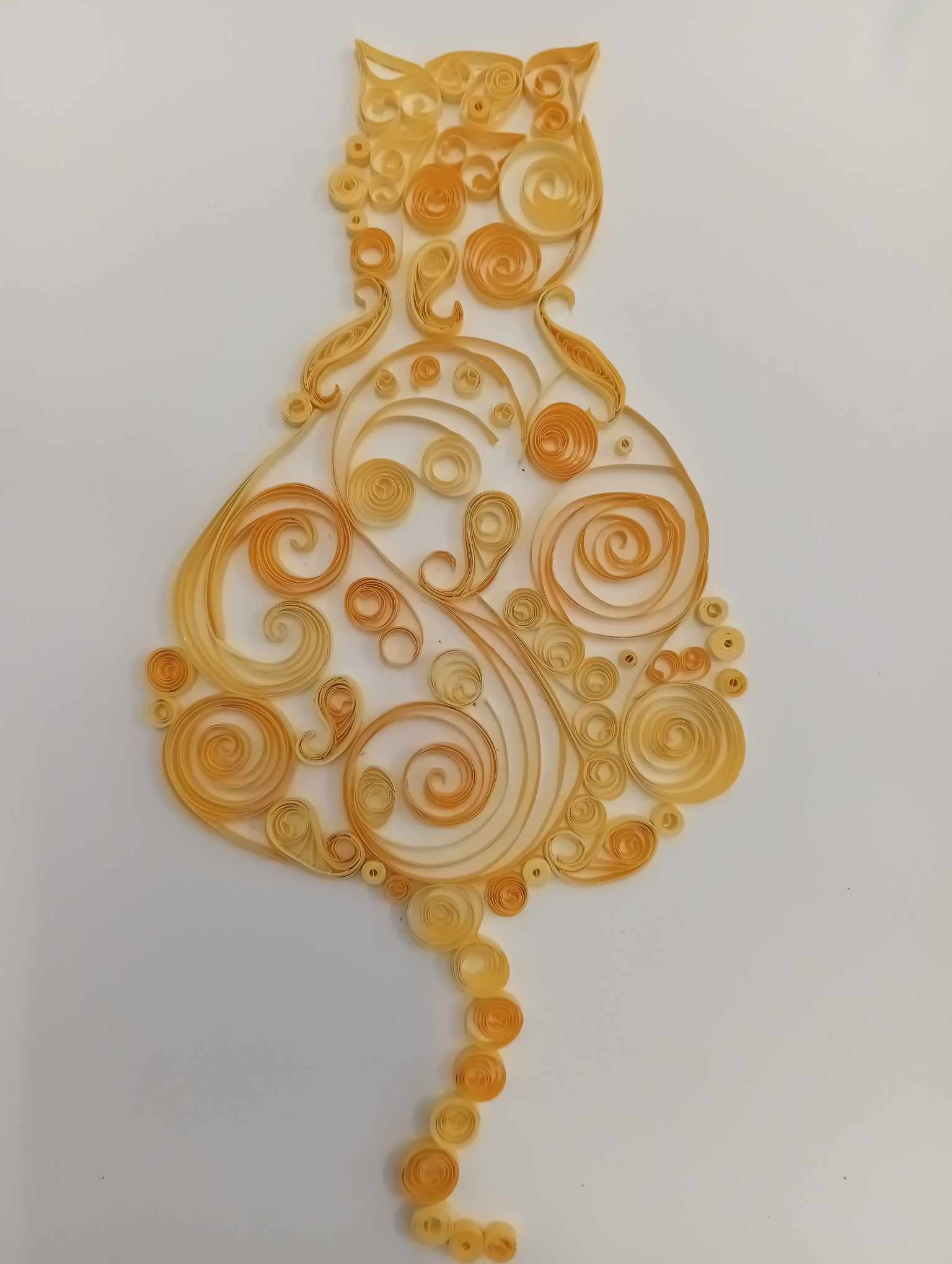 Az október óta működő quilling szakkör munkáit láthatják. Az első képen A Hold című aszakköri alkotást, a második képen A Toll, a harmadik fotón A Macska látható. Ezek mind egy személy által elkészített munkák, amely több hetet vett igénybe.