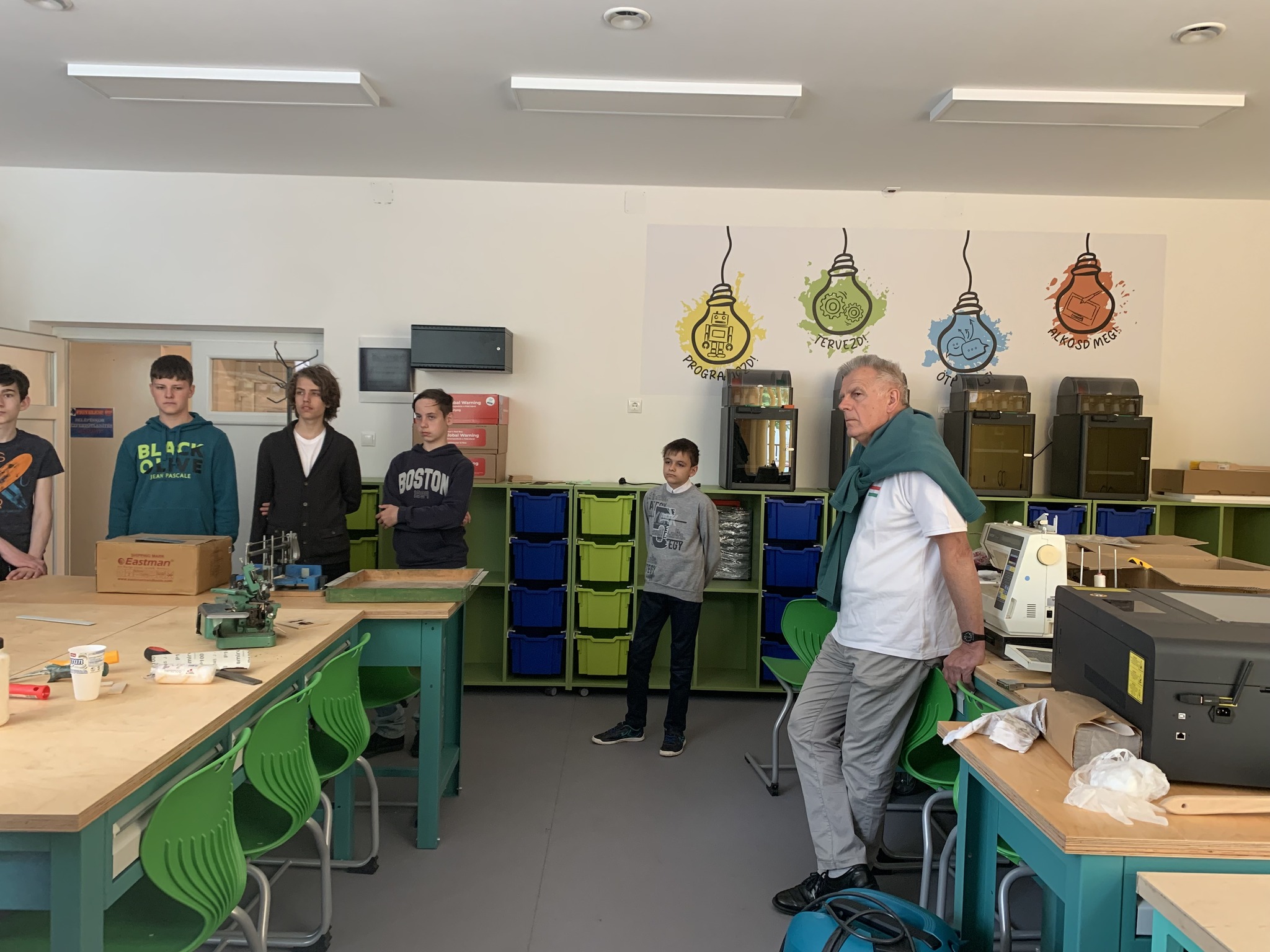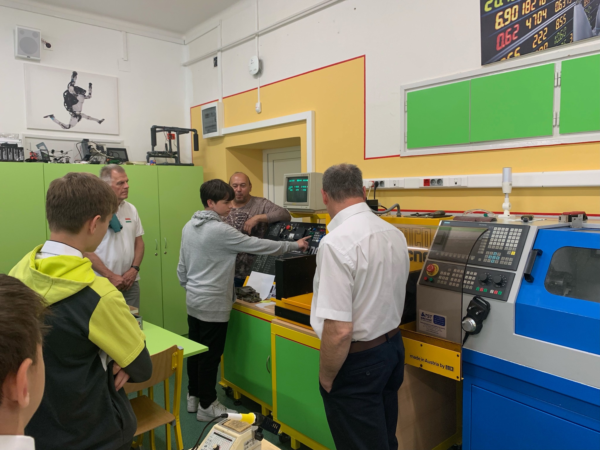 A Kiss Bálint Református Általános Iskola 7. évfolyamos tanulói jártak nálunk Pólya Sándor tanár úr vezetésével. Iskolánk pedagógusai interaktív bemutatót tartottak nekik a hamarosan megnyíló Digitális Közösségi Alkotóműhelyben, a Mechanika műhelyben és az Ipari elektronika teremben, illetve a Robotika laborban. Köszönjük, hogy itt voltak, az érdeklődőket pedig szívesen látjuk a június 24-én kezdődő Robinfó táborunkban is! 🤖