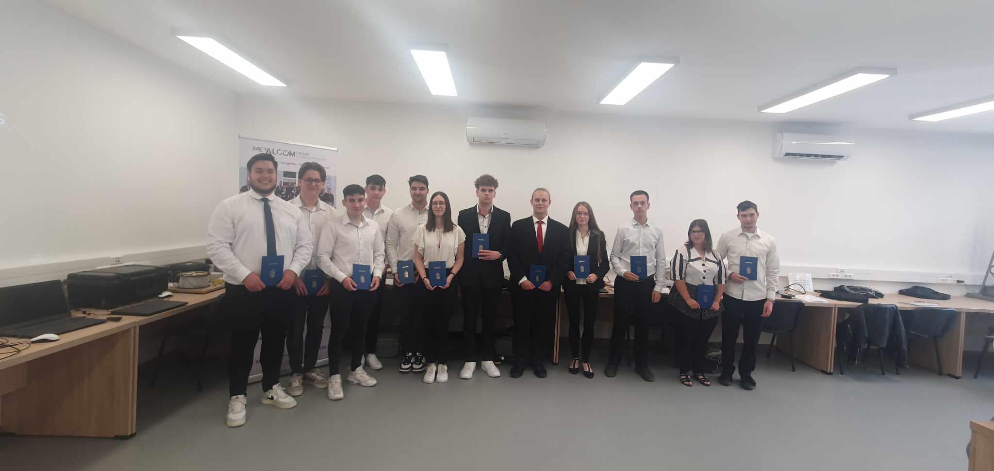 Iskolánk és a metALCOM Zrt. együttműködésében megvalósuló 2 éves, nappali tagozatos távközlési technikus duális képzés végzős hallgatói a mai napon jeles és jó eredménnyel tettek sikeres záróvizsgát. Az évfolyam tagjai már korábban is nagyszerűen teljesítettek, gondoljunk csak az OSZTV 8. helyére vagy “Az én távközlésem” versenyen aratott győzelemre. Az ünnepélyes bizonyítványosztás alkalmával a cégtől állásajánlatok is várták a fiatalokat, akik közül a diplomaszerzés után többen itt képzelik el a jövőjüket. A végzetteknek és a felkészítésben legnagyobb szerepet vállaló oktatóknak, Ágoston Csabának és Vincze Mihálynak szeretettel gratulálunk! 👏