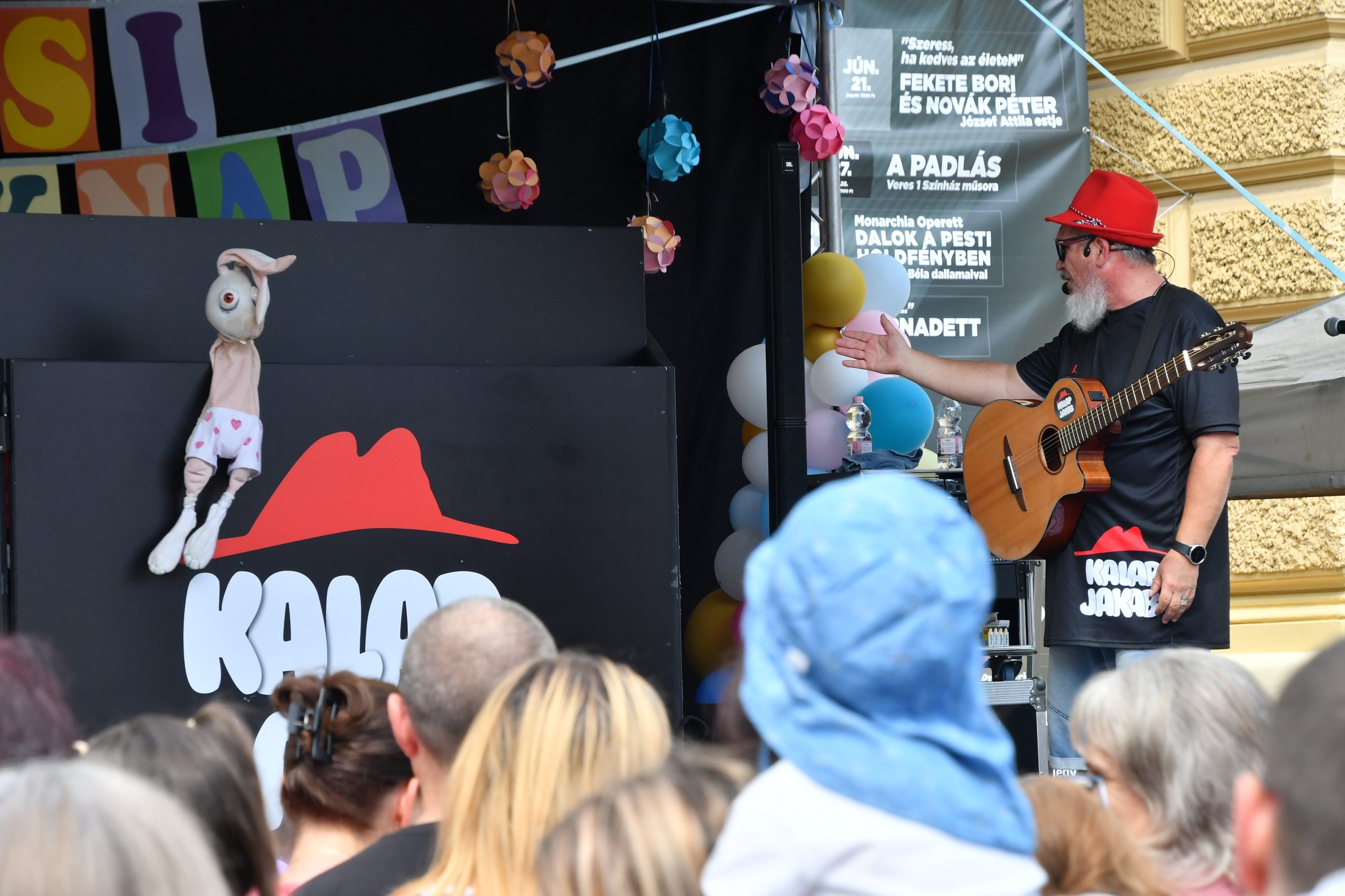 Megtelt a Kossuth tér a Városi Gyermeknapon délelőtt (2024. május 26.), amikor Kalap Jakab és társai léptek fel a színpadon. A saját dalokat játszó Kalap Jakab bábkoncertje a folk-világzene sokszínűségét ötvözi a magyar hagyományokkal, kialakítva ezzel sajátos egyedi stílusát, mely nagy sikert aratott a gyermekek és szüleik körében. Magával ragadó előadásmódját átszövi az állandóan jelen lévő zenei és színpadi humor, mely egyúttal könnyen emészthetővé teszi a népzenei elemekre épülő produkciót.