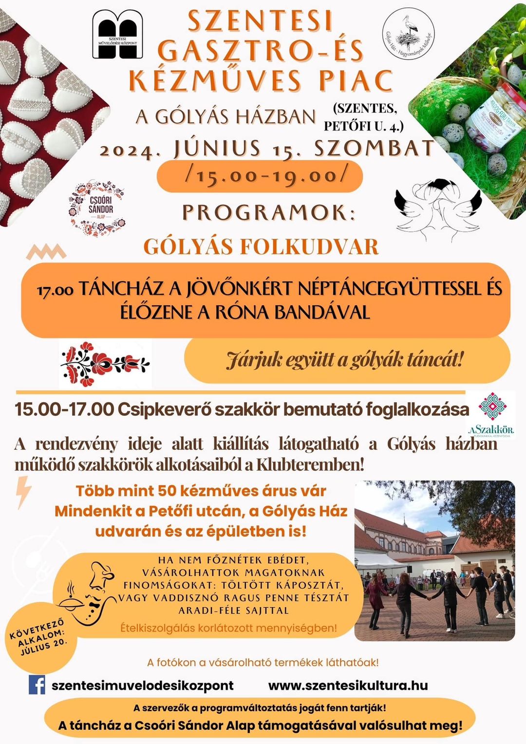 2024. június 15-én ismét Szentesi Gasztro-és Kézműves Piac várja az érdeklődőket a Gólyás Házban!