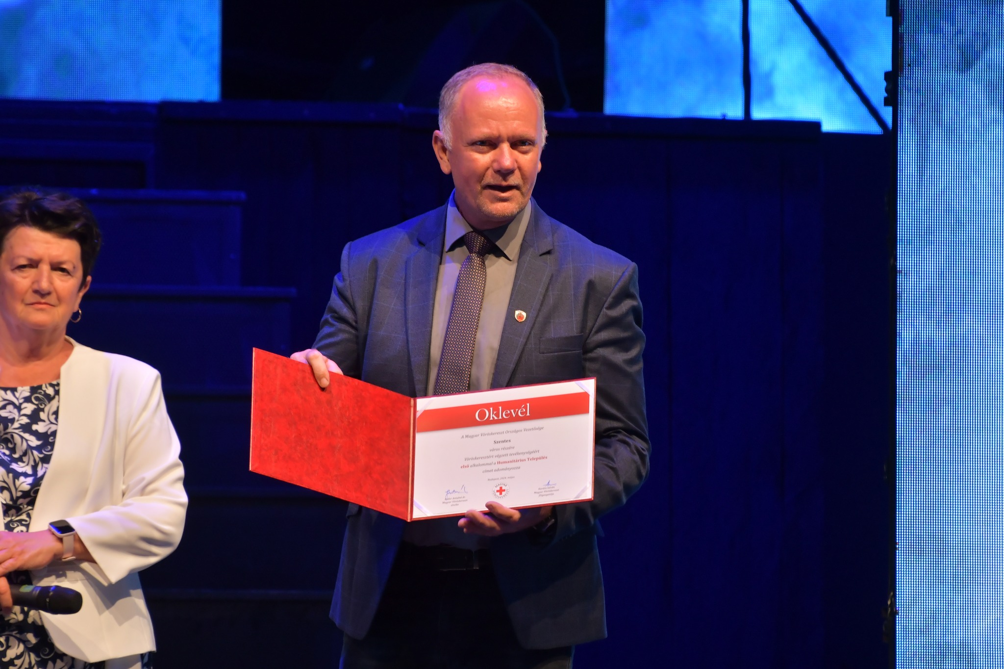 Az emléklapot Sasvári Krisztina a Vöröskereszt Csongrád-Csanád vármegyei igazgatója és Korom István a országos választmány tagja adta át Szabó Zoltán Ferenc polgármesternek 2024. május 31-én a Nikola Tesla életét bemutató musical előtt. Ezt a címet évente meg kell újítani, amíg meg nem kapja a Humanitárius Település örökös címet.
