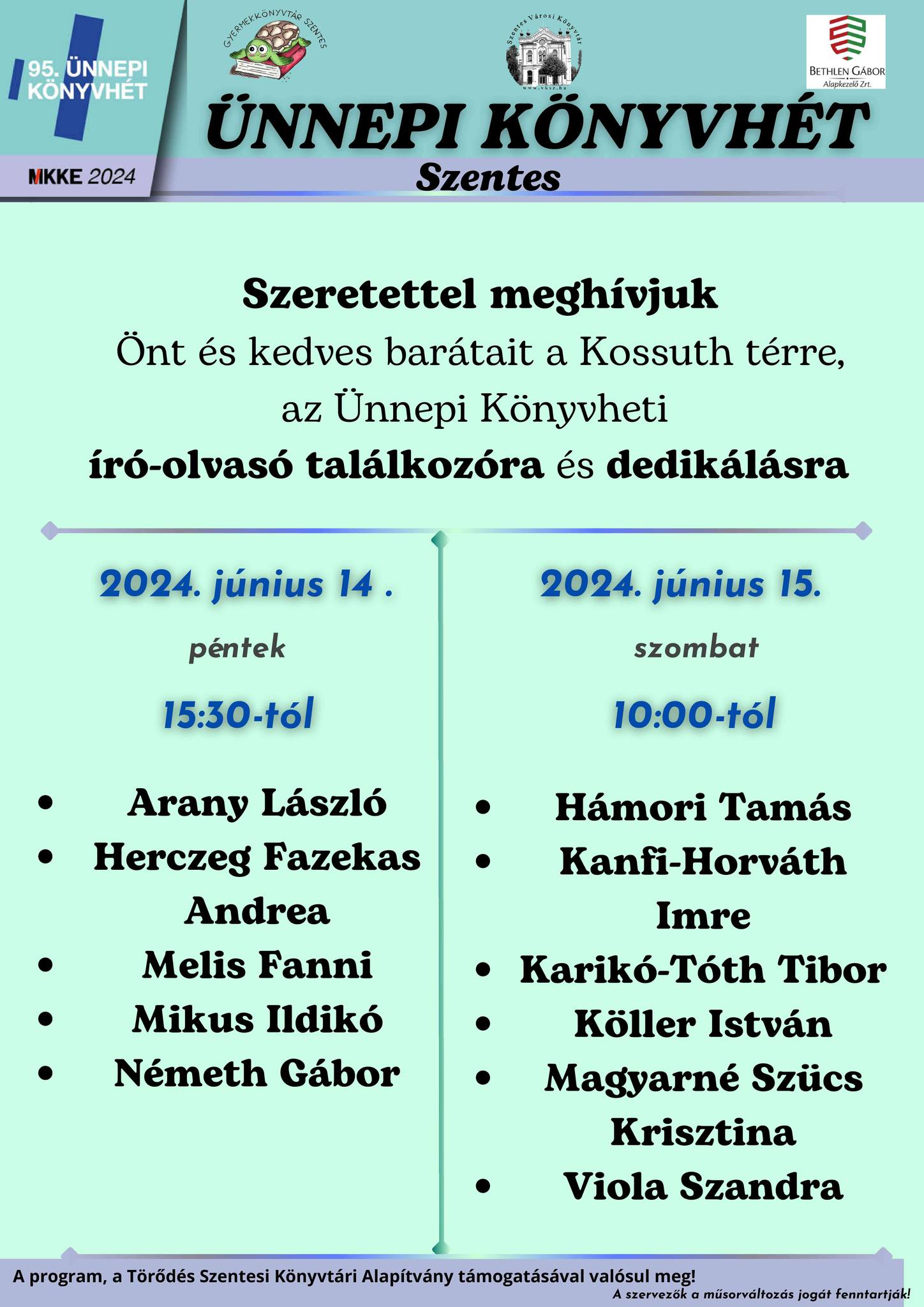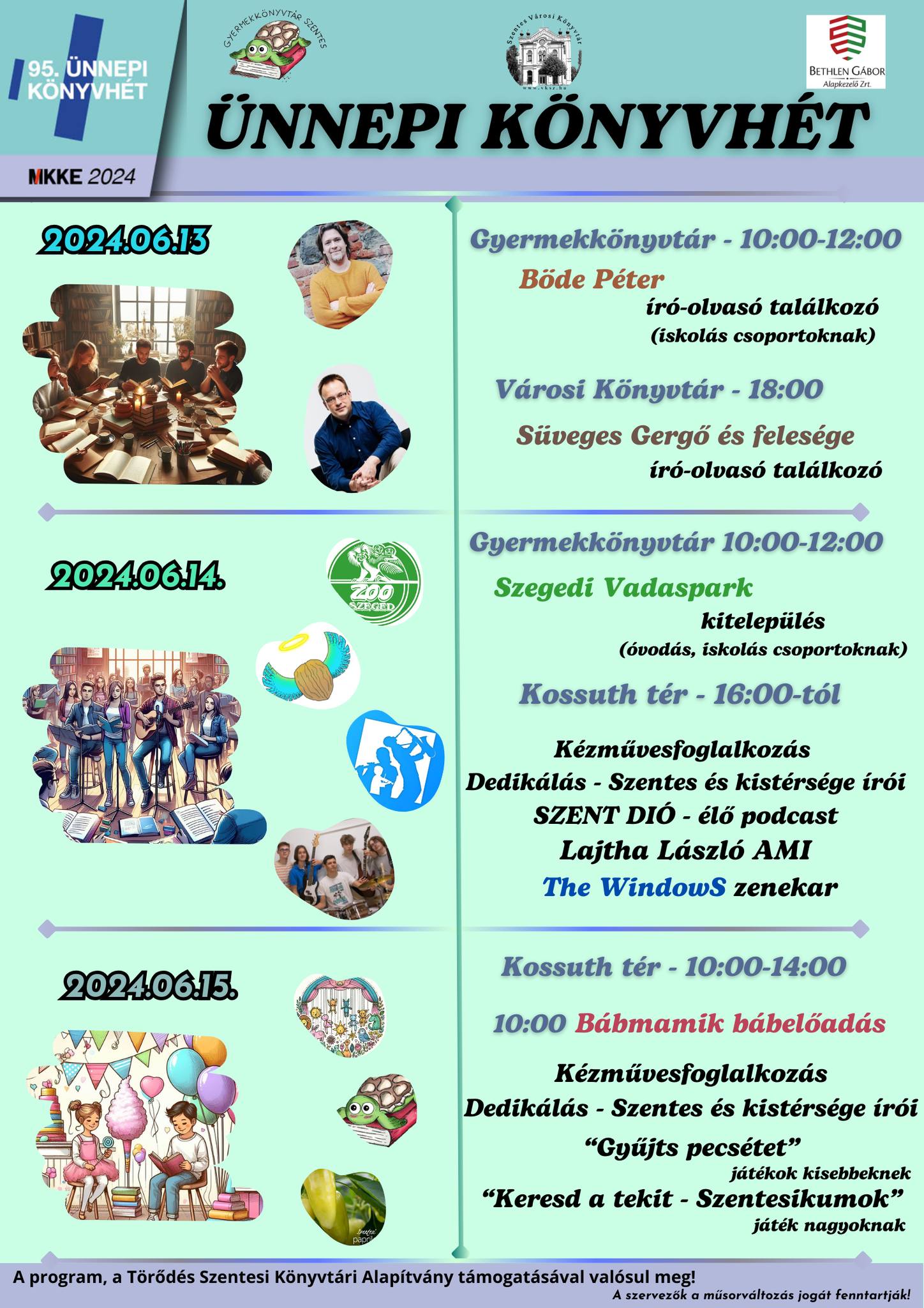 16:00 Kézműves foglalkozások, dedikálás – Szentes és kistérsége írói, Szent Dió – élő podcast, The WindowS zenekar